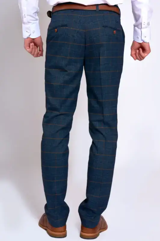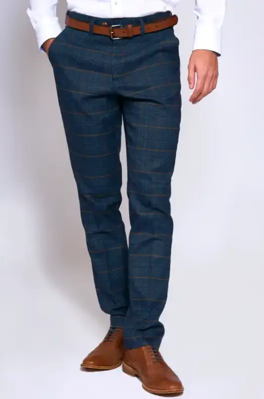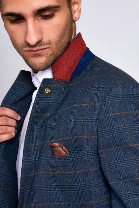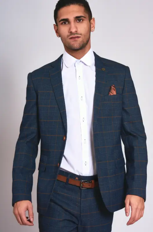 Den rutiga kavajen och byxorna i en vacker mörkblå färg gör denna kostym lämplig för alla säsonger. Oavsett om du närvarar vid en sommarbröllop eller har en affärsmöte på vintern, är denna kostym mångsidig och alltid ett bra val. Fullända din kostym med en slips eller fluga i en matchande färg och du är redo att lysa.