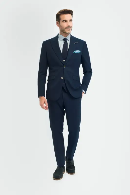 En tredelad kostym erbjuder mer än bara ett stilrent utseende – den ger struktur, elegans och mångsidighet. Tropez Marinblå är det perfekta valet för varje tillfälle där du vill framstå som välklädd och sofistikerad. Kostymen består av tre delar: en kavaj, en väst och ett par byxor, som tillsammans skapar en skarp och elegant passform.