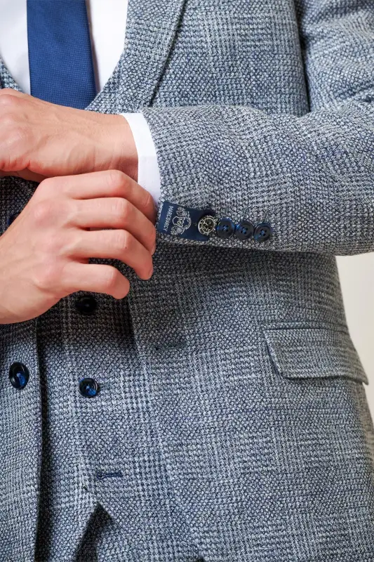 De eleganta tredelade kostymerna från Marc Darcy är idealiska för en rad olika tillfällen, från festliga tillställningar till kontorsklädsel. De fungerar också utmärkt som bröllopskostymer. Denna ljusblå tredelade kostym från Marc Darcy är den perfekta outfiten för din speciella dag. Kombinera den med eleganta skor och en stilfull slips, så kan du vara säker på att du kommer att stråla. Kostymen kan även bäras av bröllopsgäster och kan enkelt anpassas genom att välja att bära den utan väst för en mer avslappnad look. Se här våra andra bröllopskostymer!
