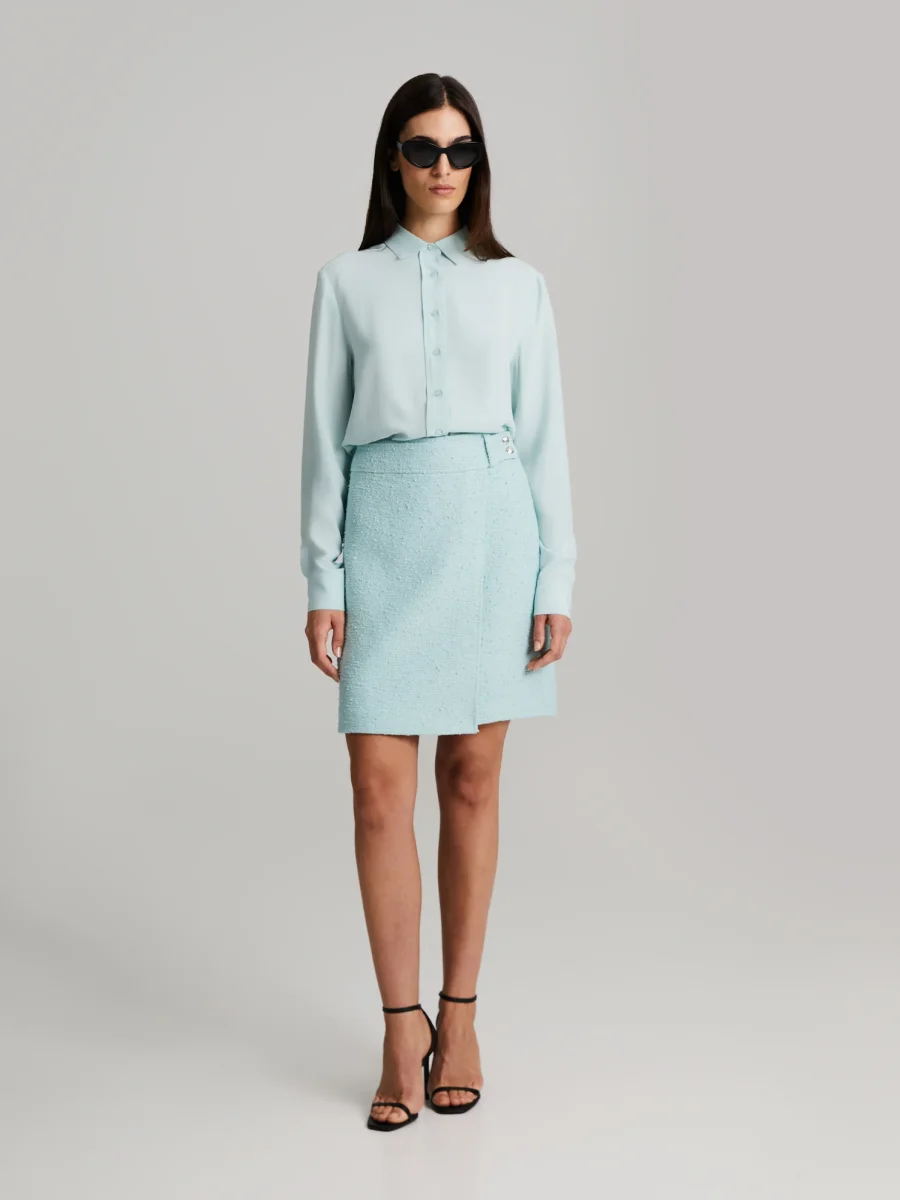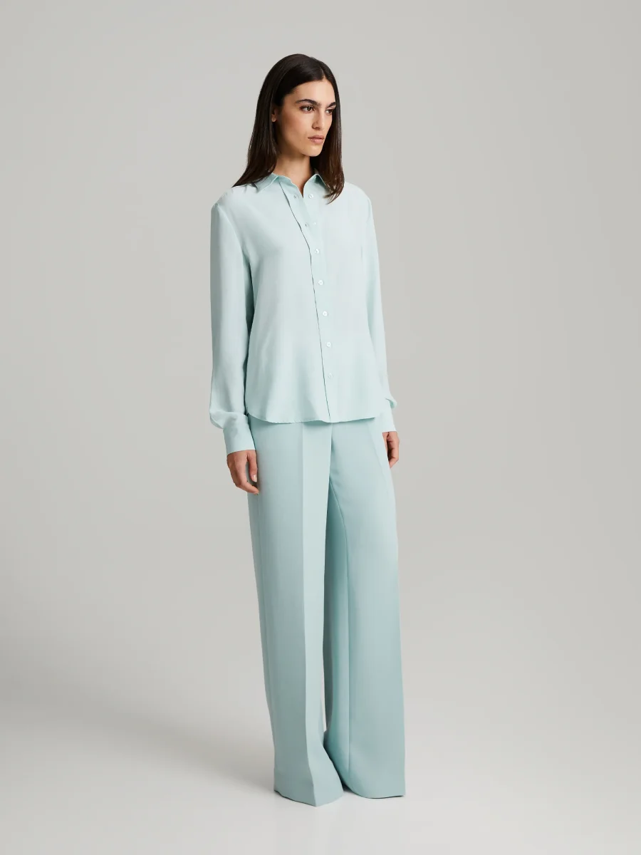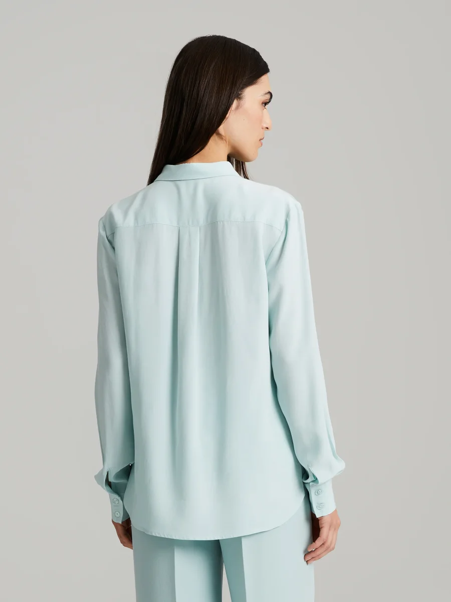 Klassisk sidenblus med krage och knappar framtill.