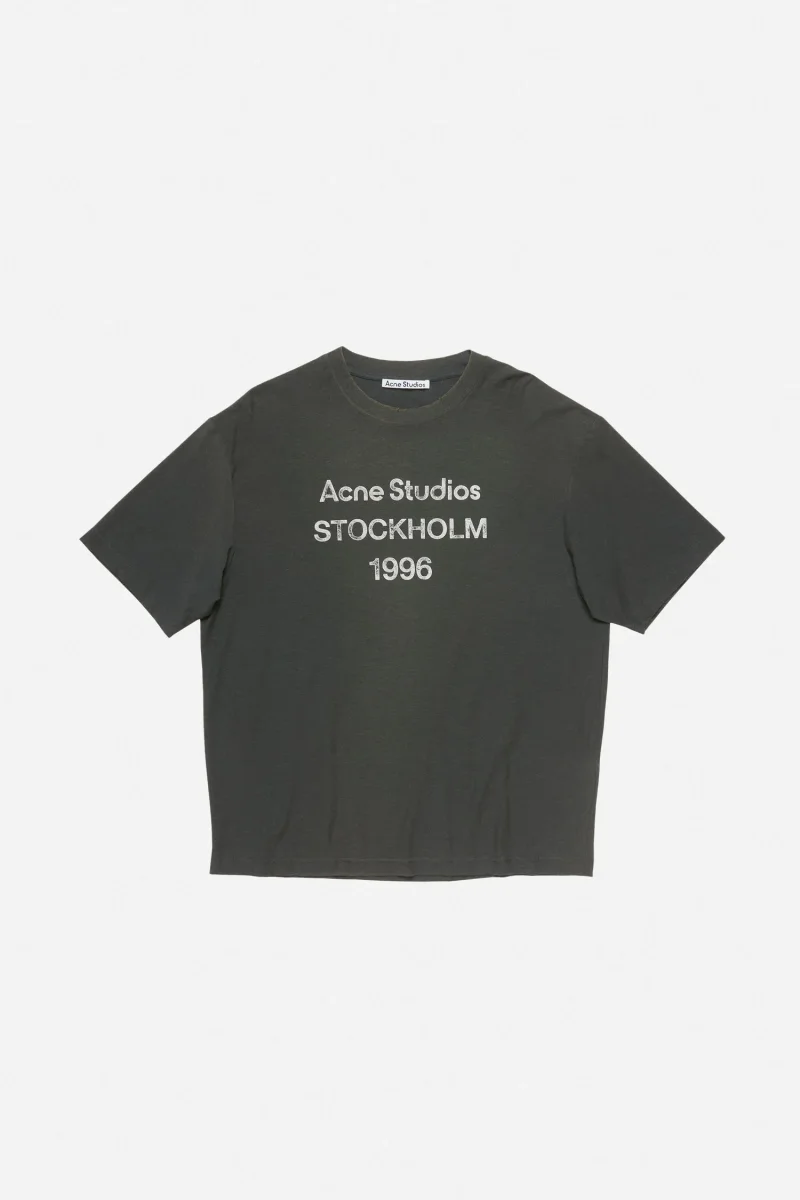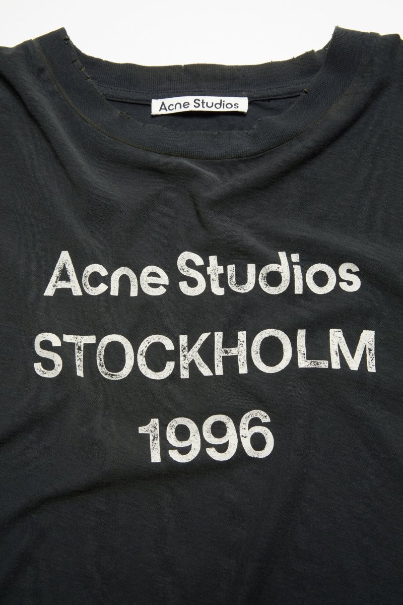 Crew neck t-shirt is cut to a relaxed unisex fit. Detailed with an Acne Studios 1996 stamp logo, distressed neckline, cuffs and bottom hem. Crafted from cotton with a sprayed vintage finish.