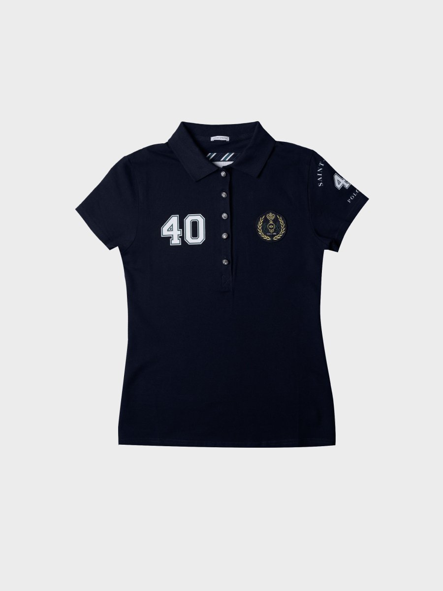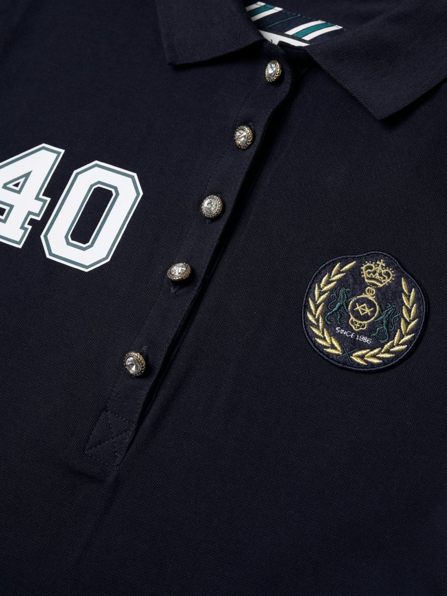 Classic slim-fit polo shirt with Andiata 40th anniversary theme. Golden buttons, embroidered golden monogram and number 40 at front, white “Saint-Tropez, 40, Club Andiata” print at sleeve and large embroidered number 40 with printed text at back.