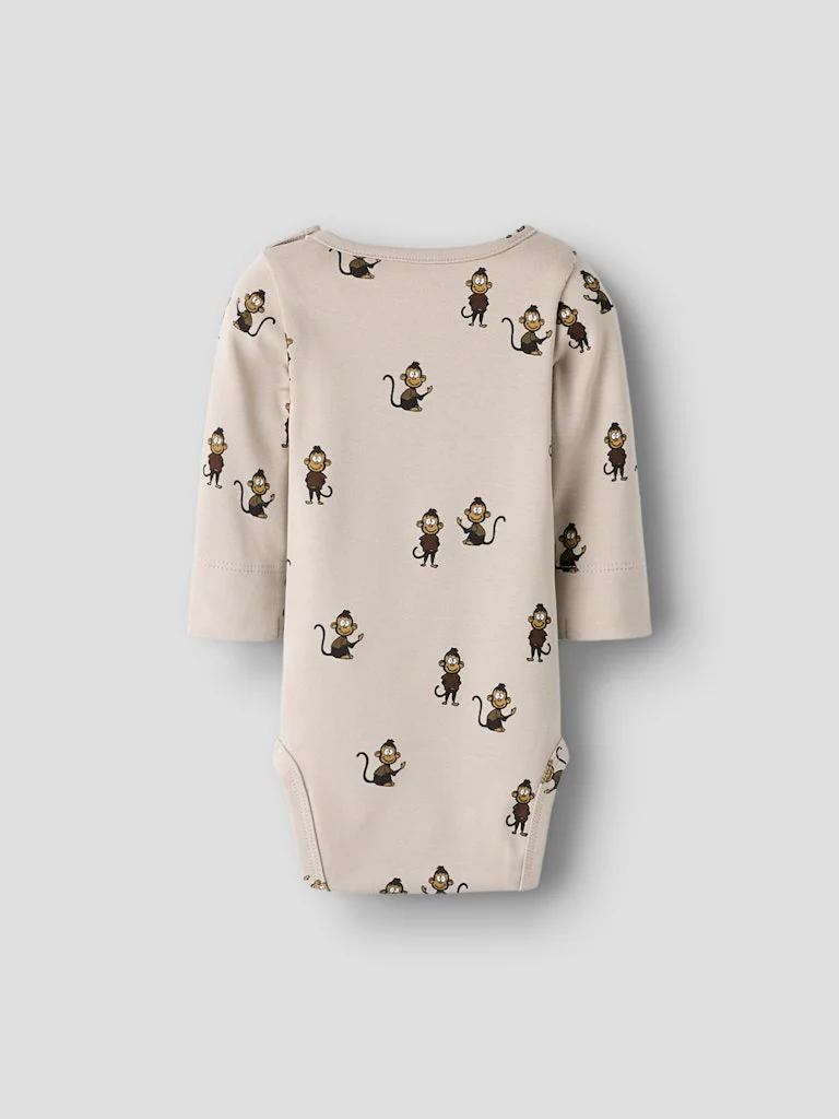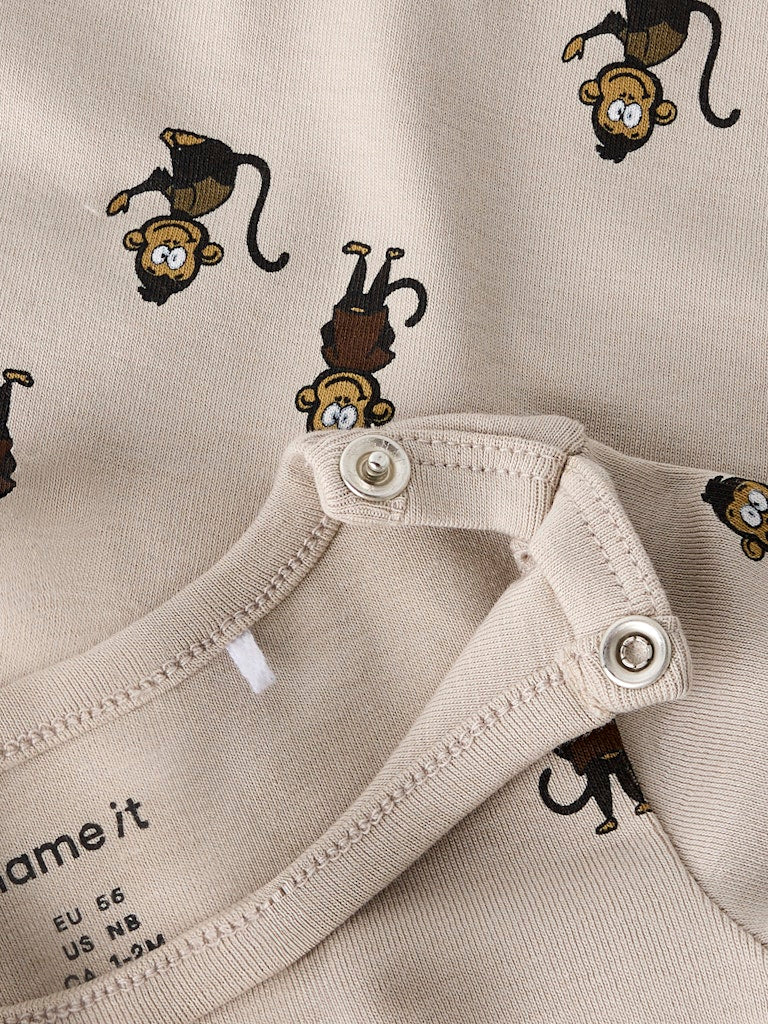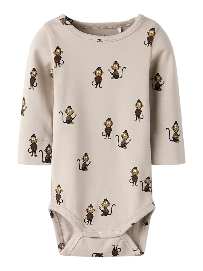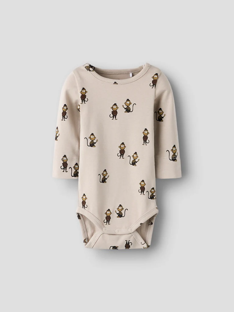 Söt beige body med apor – mjuk, lekfull och perfekt för små upptäckare 🐒
