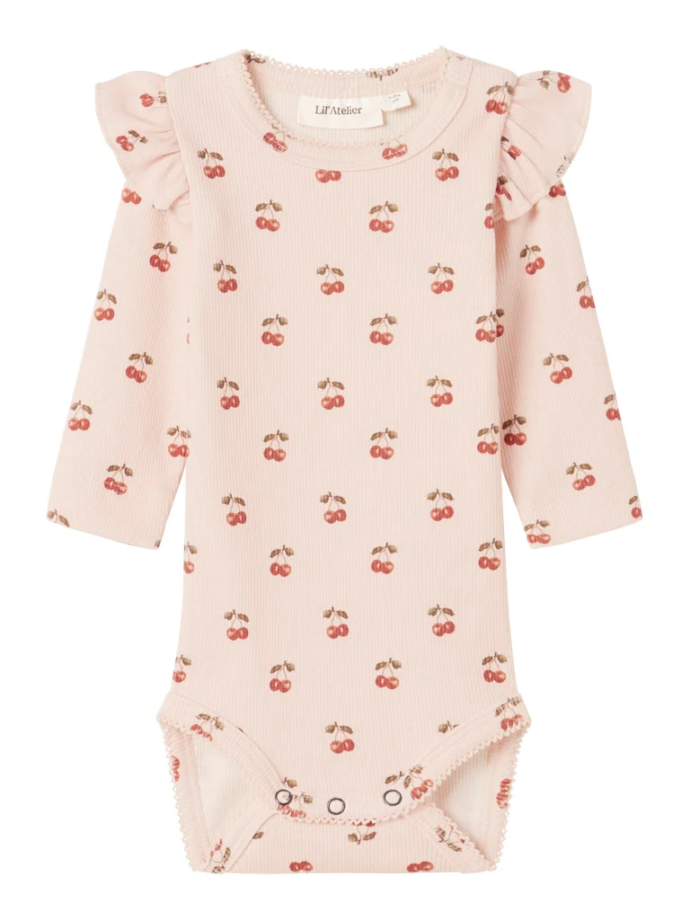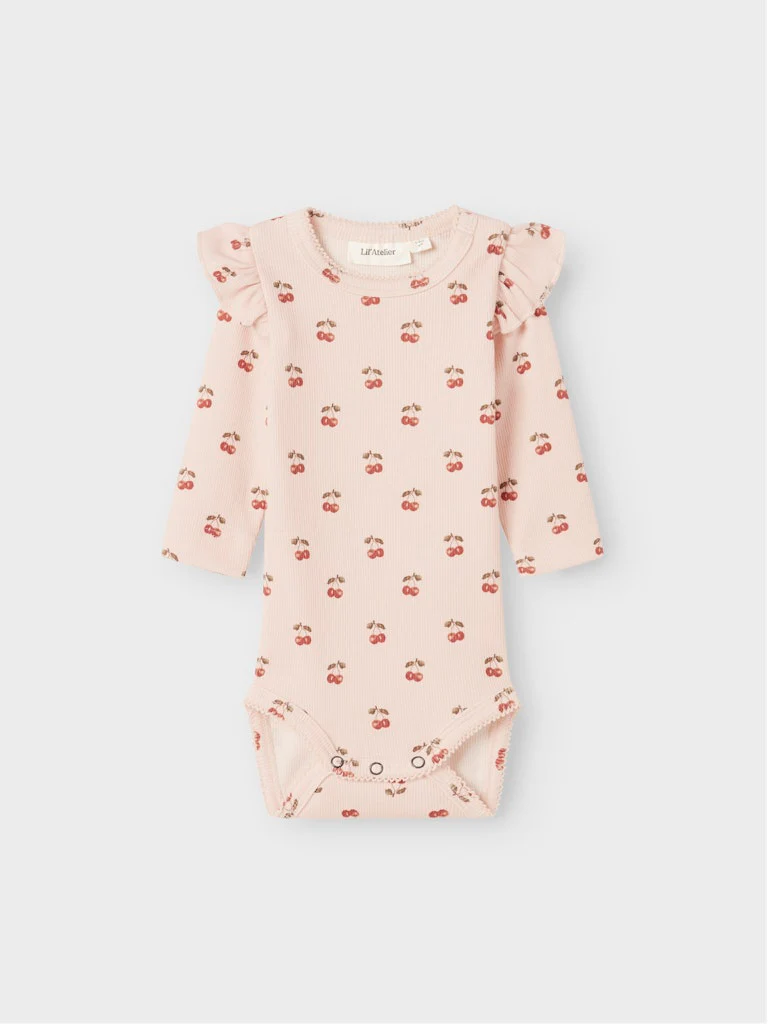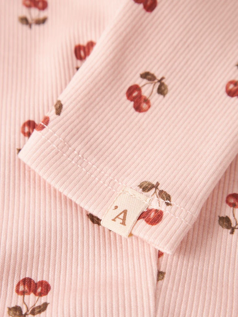 En mjuk och söt body som gör vardagen lite extra charmig. Det fina körsbärsmönstret matchar perfekt till leggingsen i samma serie och ger en lekfull, gullig look som passar både hemma och på utflykter.