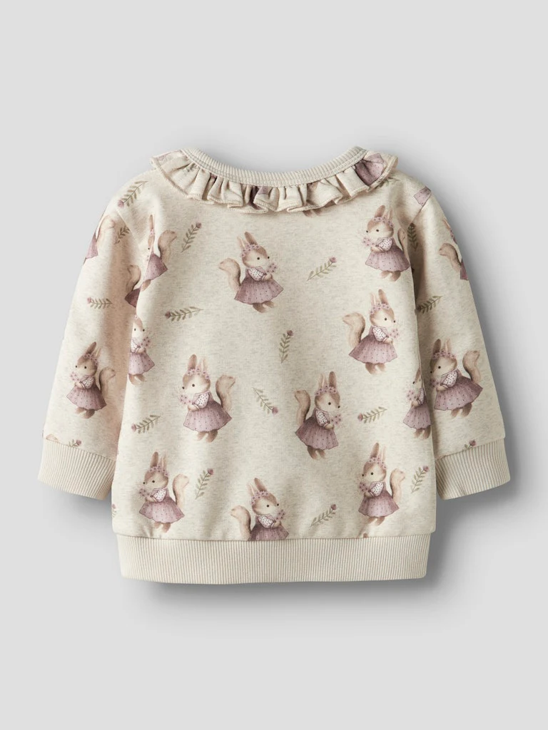 En mjuk och charmig sweatshirt från Name It Baby med ett gulligt ekorre mönster. Tröjan är tillverkad i skön ekologisk bomullskvalitet som andas och håller sig mjuk tvätt efter tvätt. Perfekt för vardag, lek och mysiga dagar hemma.