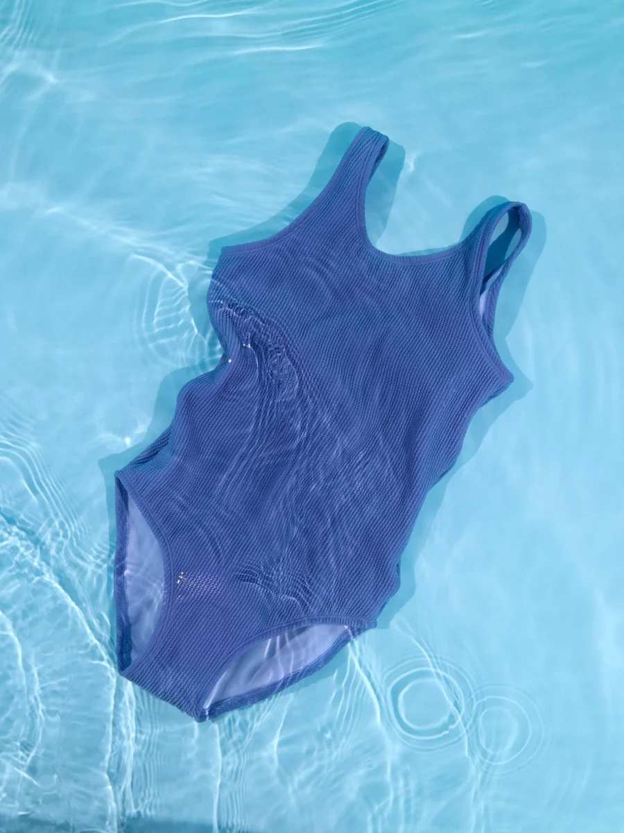 Enfärgad blå baddräkt