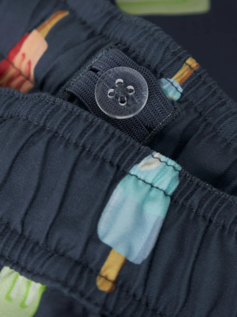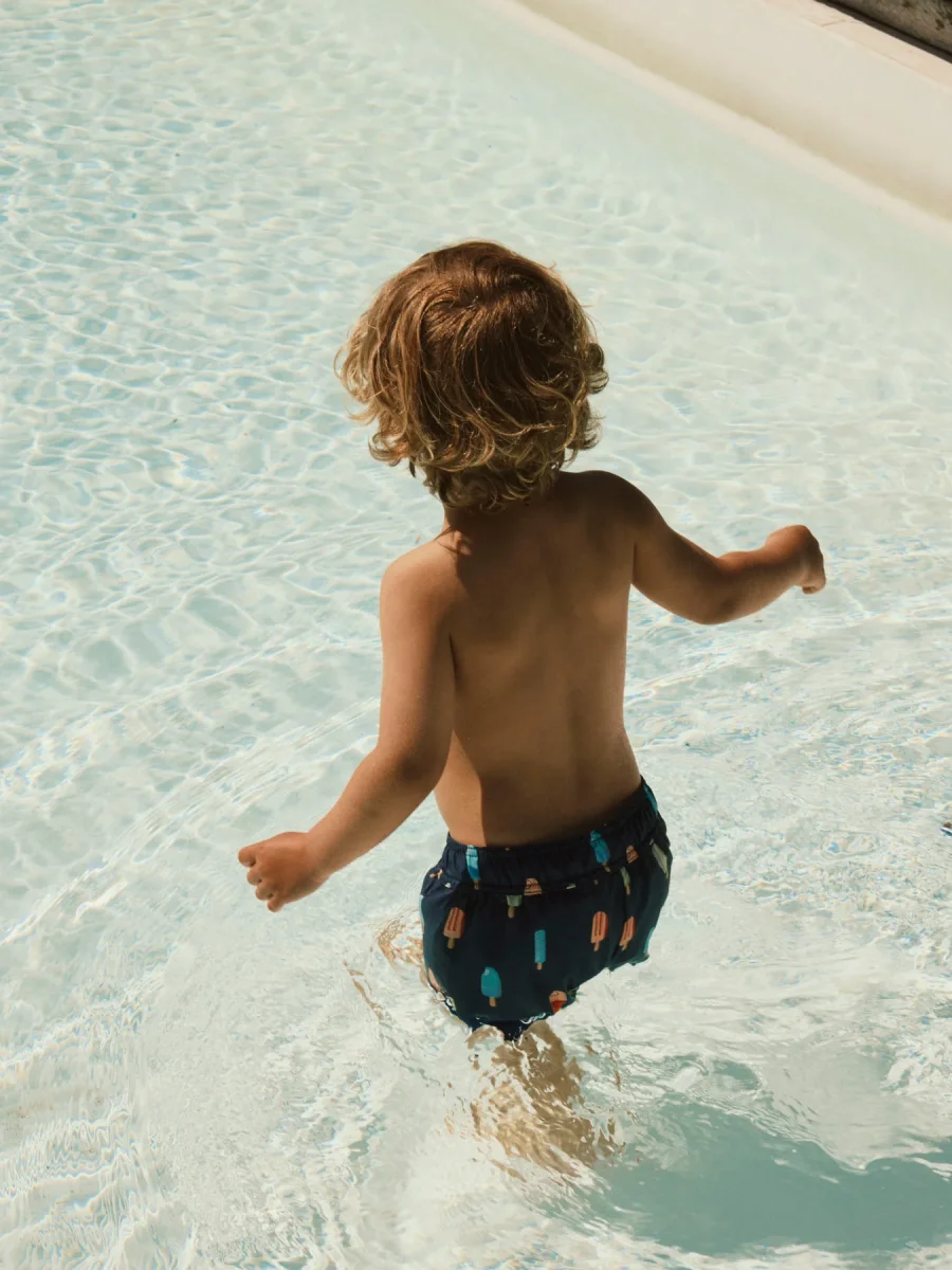 Ta ett dopp eller njut av det varma vädret i svala badklädesstilar som ger ditt barn en trendig look. Vävt tyg har ett distinkt korsmönster och en lätt texturerad yta för ett rent och klassiskt utseende.