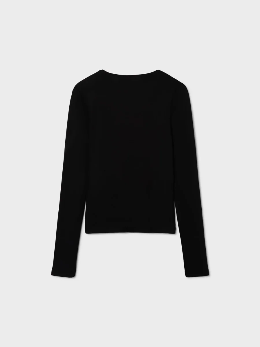 Enfärgad, svart långärms-topp, perfekt bas för din garderob. Tvätt 30 grader, fintvätt 95% Viscose, 5% Elastane NLFNELIZ LS SHORT TOP13224213