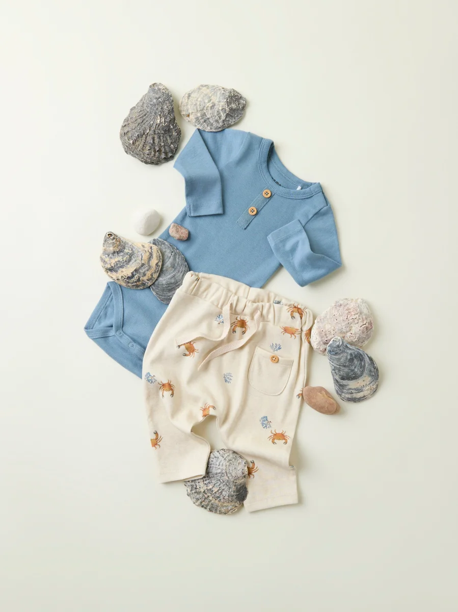 Fräscha upp ditt barns garderob med mjuka och praktiska bodys som är perfekta att använda året runt. Ribbstickad har ett vertikalt, randigt mönster och bra elasticitet för en skön känsla och en tidlös look. Produkttyp: BodysuitHals: Rund halsÄrm: Långa ärmarStängning: TryckknappExtra detaljer : Knappdetalj Huvudmaterialet i denna produkt innehåller minst 50 % ekologisk bomull. Ekologisk […]