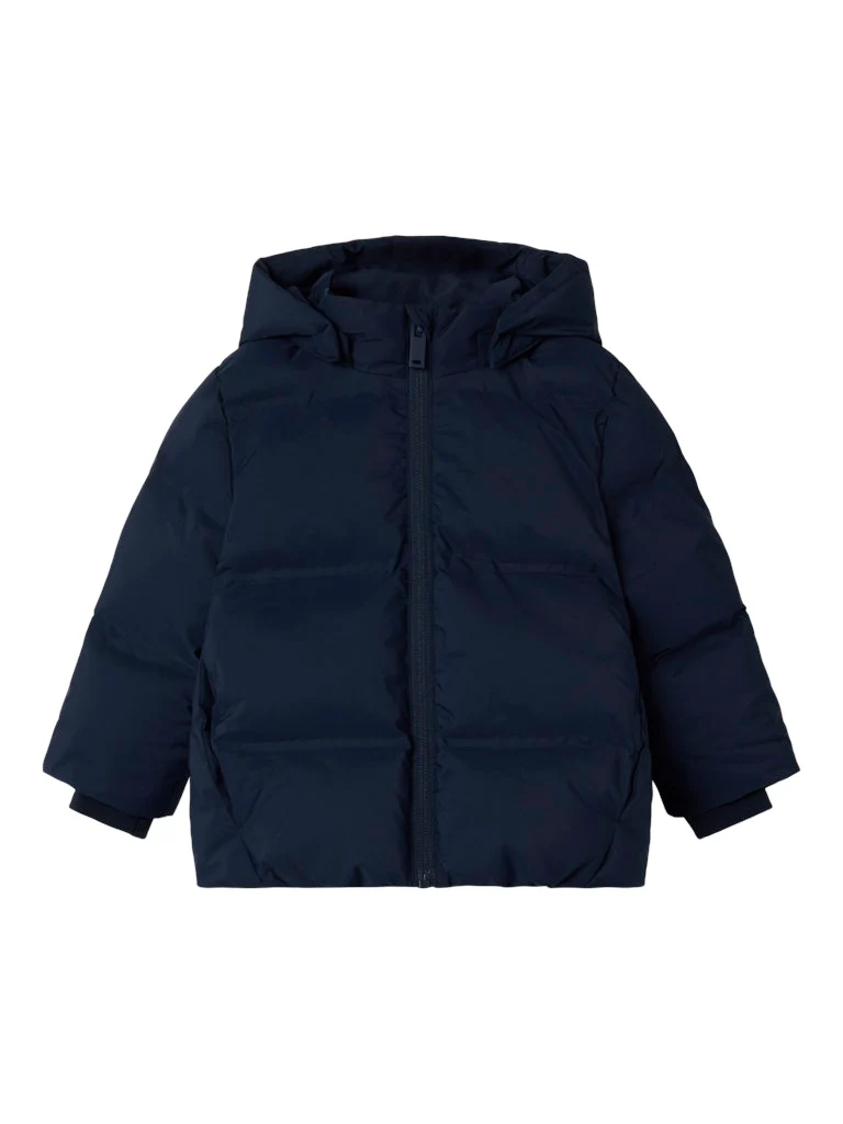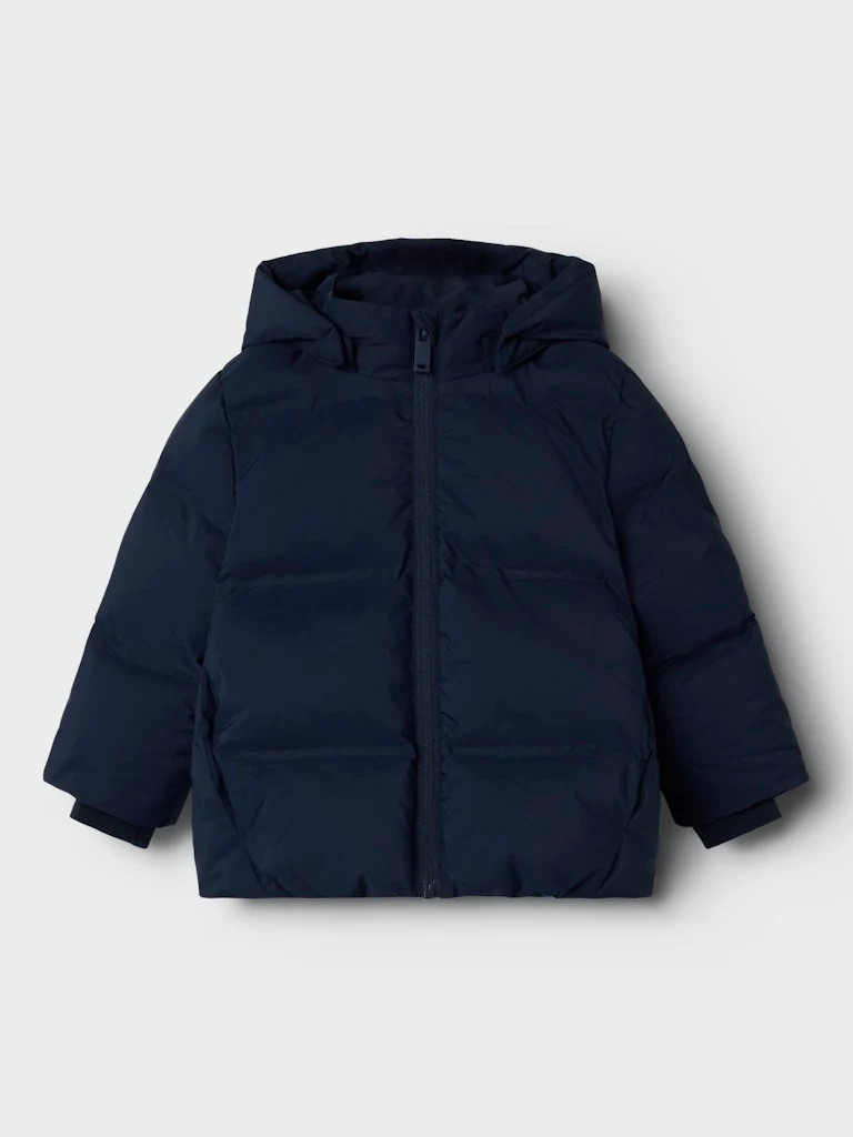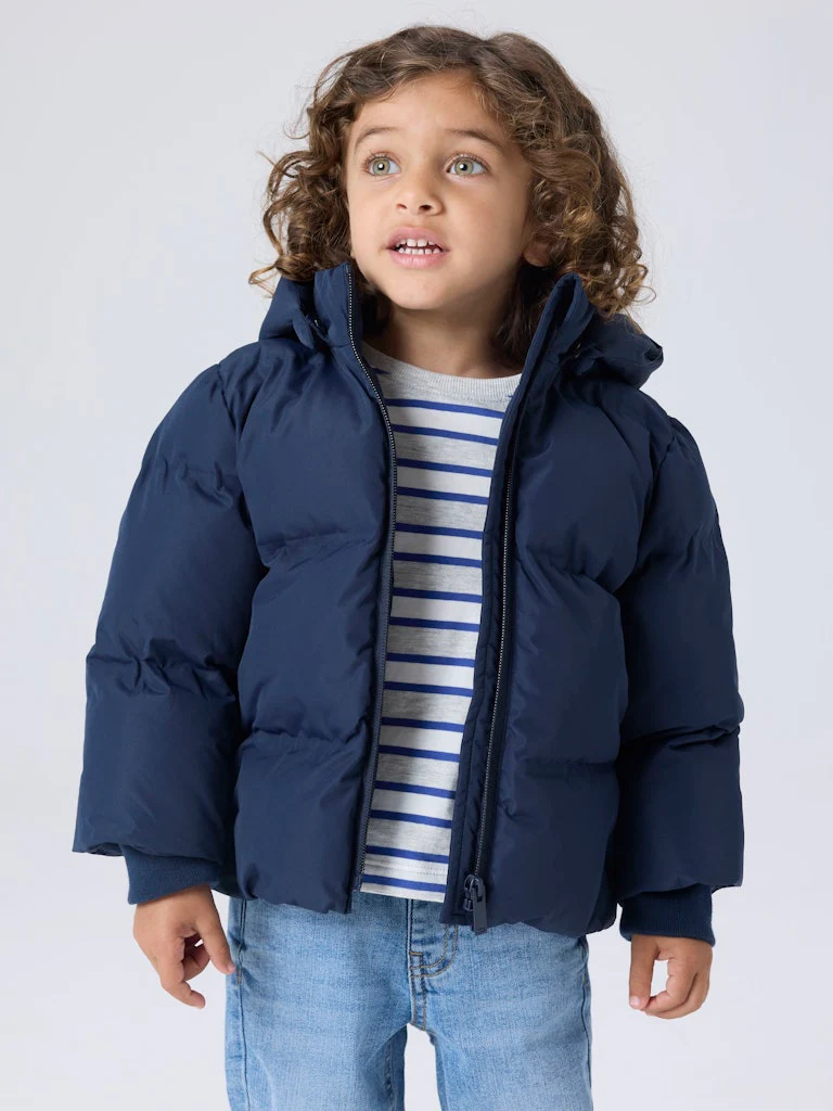 En varm och praktisk vinterjacka från Name It i en klassisk marinblå färg.
