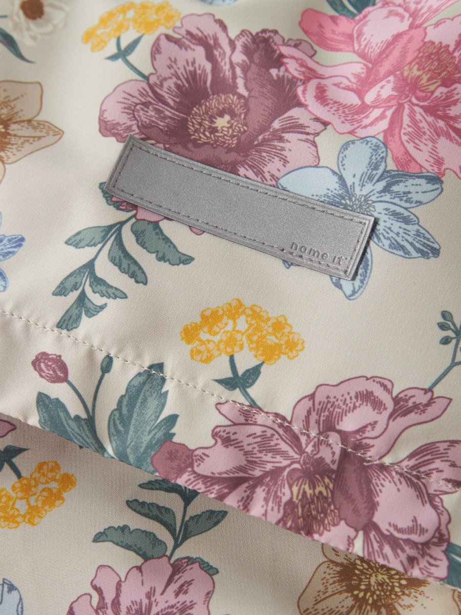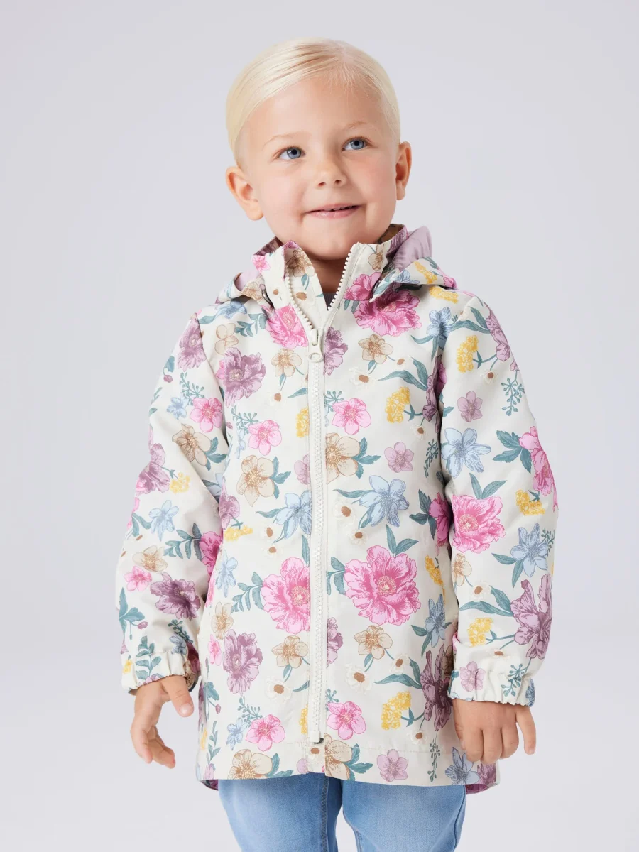 En lätt och praktisk jacka med blommigt mönster som ger en lekfull och glad känsla. Perfekt som ytterplagg under mildare dagar och ett smidigt val för både förskola och fritid.