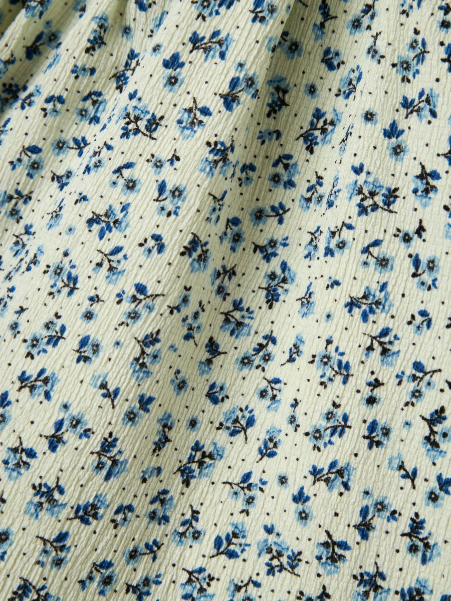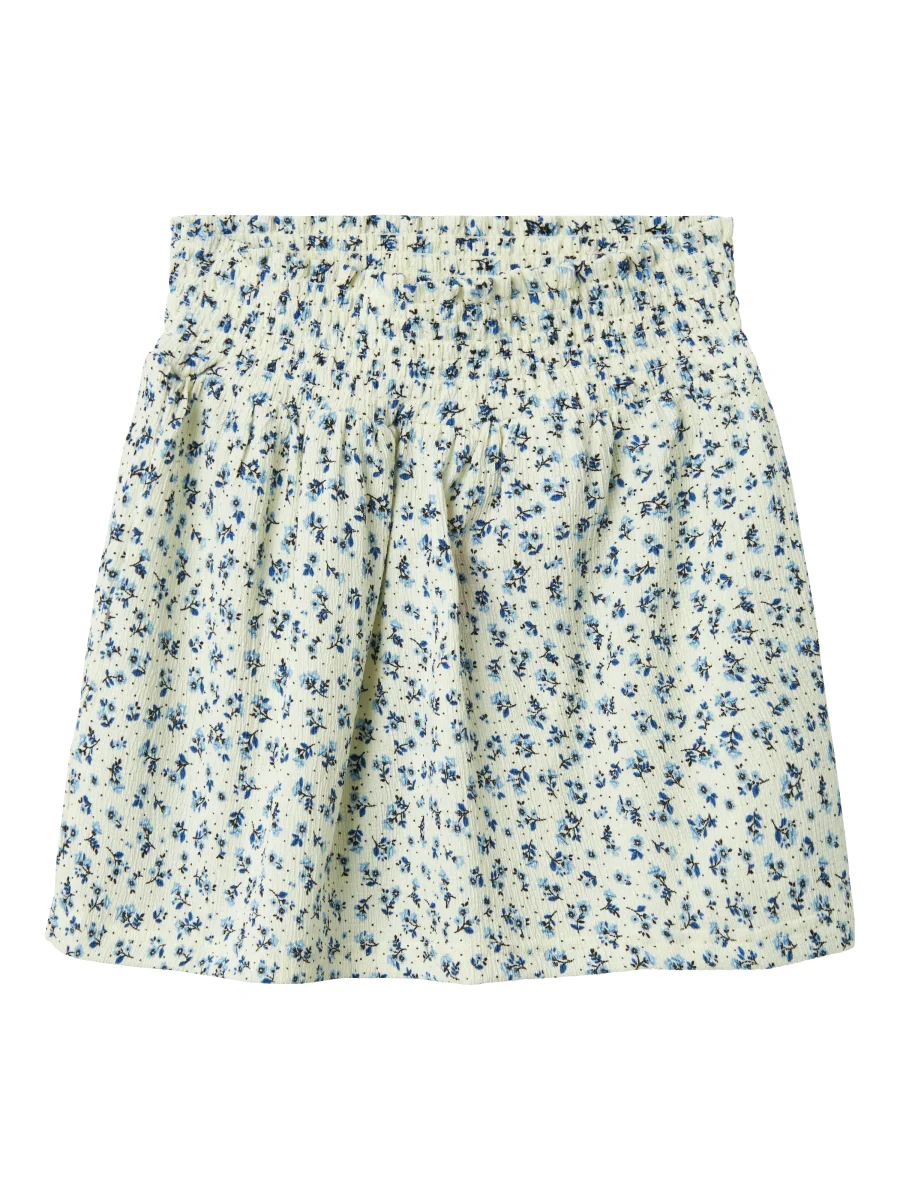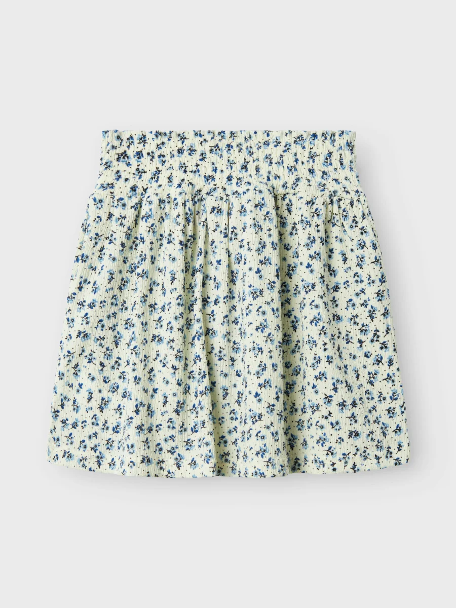 Småblommig vit kjol med blå blommor. Söt modell i ljuvlig kvalitet. Huvudmaterialet i denna produkt innehåller minst 50 % återvunnen polyester. Återvunnen polyester sparar naturresurser och minskar mängden avfall 40°C färgtvätt, Blek ej, Torktumla ej, Stryk i måttlig temperatur, Kemtvätt ej 98% Återvunnen Polyester, 2% Elastane NKFBIBA SKIRT13238128
