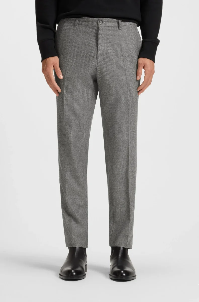 Byxor från BOSS Herr. Ett perfekt grund i din formella garderob med diskret mikromönster och slim fit. 100% jungfruull. Den här produkten innehåller minst 60% bättre råmaterial. Den här produkten är tillverkad av ansvarsfullt anskaffad ull. För oss innebär ansvarsfull anskaffning att ullen är mulesingfri och att kraven i de fem friheterna för djurvälfärd är uppfyllda.
