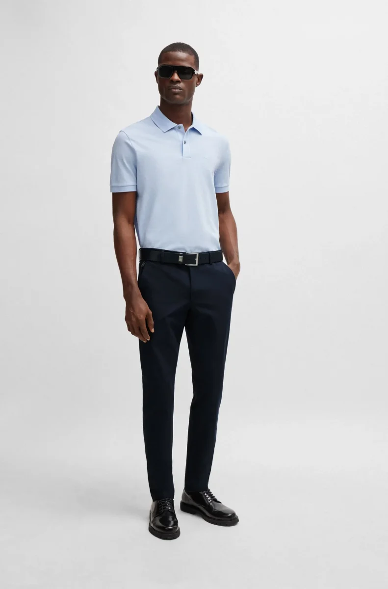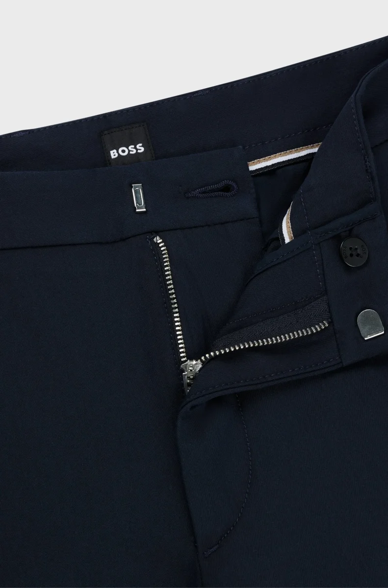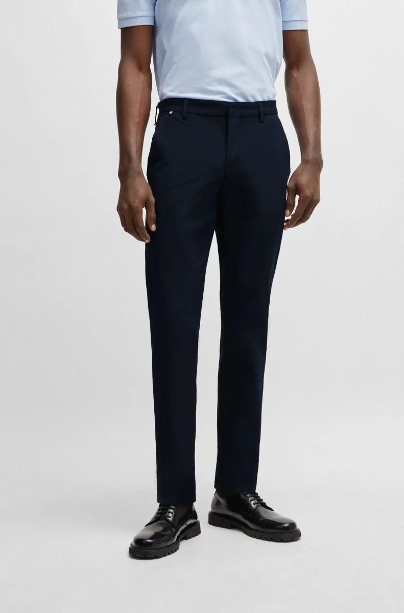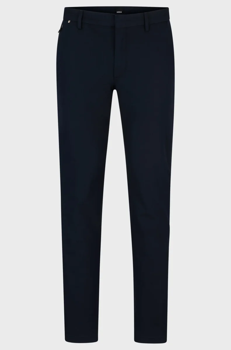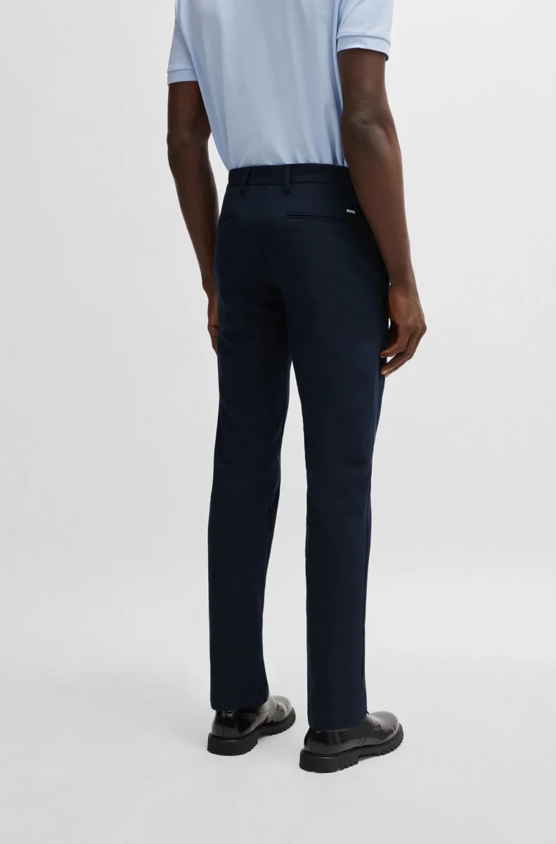 Bekväma byxor från BOSS Herr. Tillverkade av en bekväm stretchblandning. Defined fit med normalhög midja. Det här plagget är delvis tillverkat av ekologisk bomull. Vår standard för ekologisk produktion tillåter ingen användning av syntetiska gödningsmedel, bekämpningsmedel eller genetiskt modifierade frön.