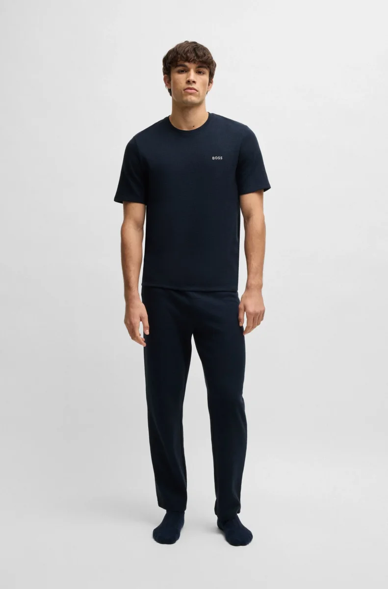 Koppla av med stil i den här pyjamas-t-shirten från BOSS Herr. Regular fit. Tillverkad av en bomullsblandning. Med broderad BOSS-logga. Den här produkten innehåller minst 60% bättre råmaterial. Det här plagget är tillverkat med minst 60% bomull som kommer från regenerativt jordbruk. Generativt jordbruk prioriterar att bevara och återställa den naturliga miljön, med en ökad biologisk mångfald, bevarad vattenkvalitet och förbättrad jordhälsa som mål.