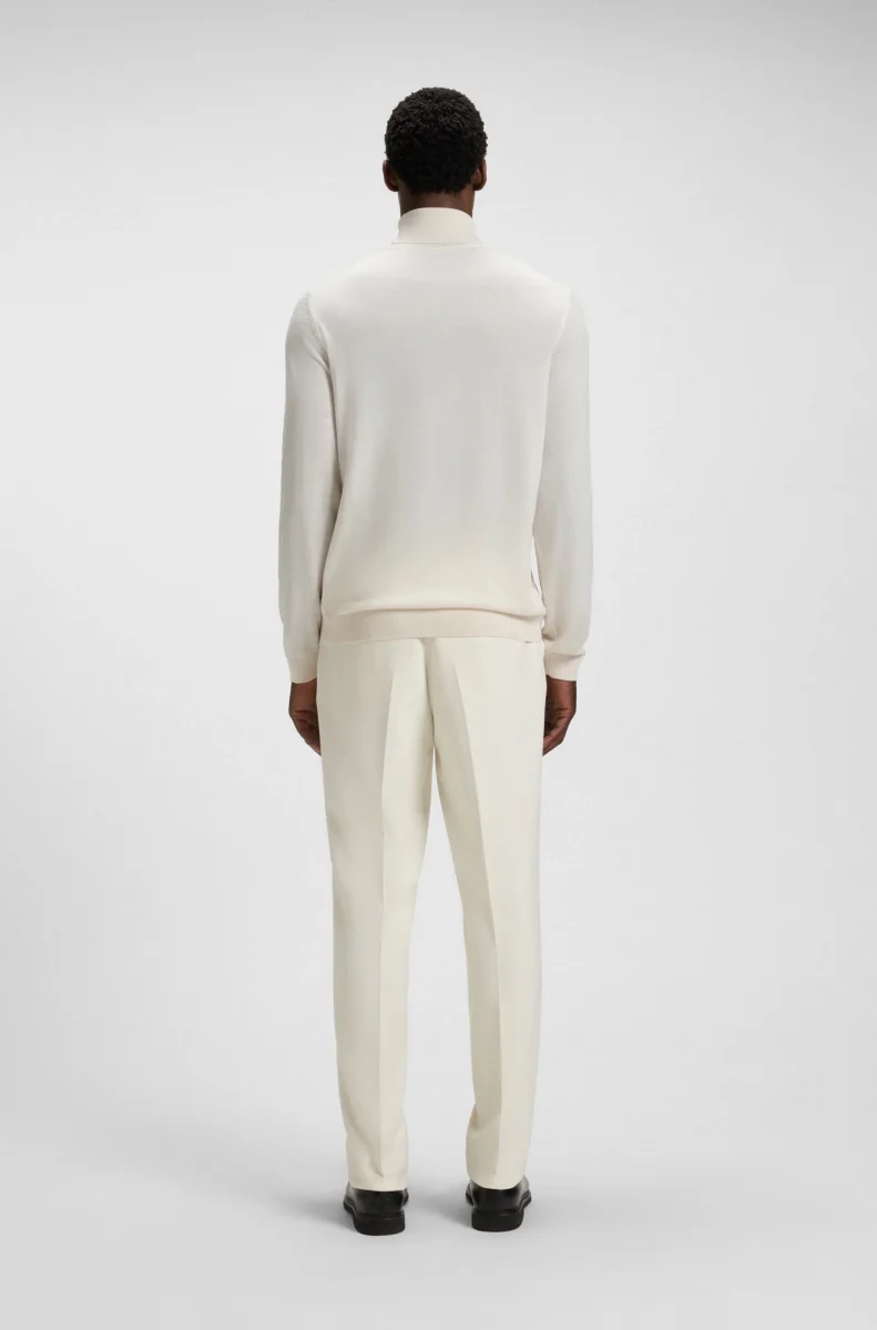 Regular fit-tröja från BOSS Herr. Ett stilsäkert val för alla årstider. Tillverkad av merinoull som andas. Den kombinerar snygg design och mångsidig komfort och passar lika bra för dagar på kontoret som avslappnade helger. Buren av David Beckham i den nya BOSS ONE-kampanjen för underkläder/bodywear.
