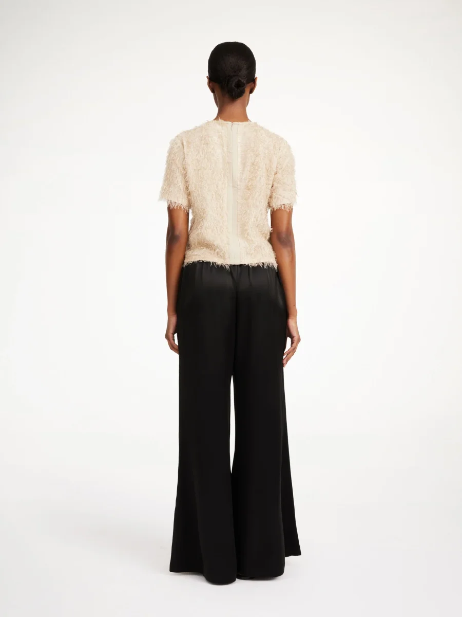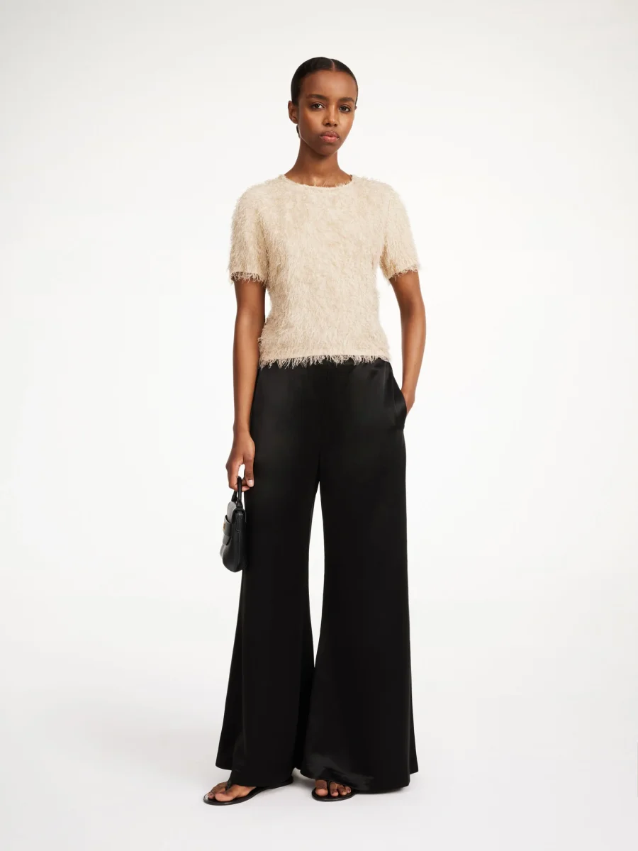 By Malene Birger Lucee trousers woven from a fluid blend that sweeps into a flared leg. They’re designed for a high waist and a regular fit which makes them ideal to style with a cropped top and heels for special occasions.