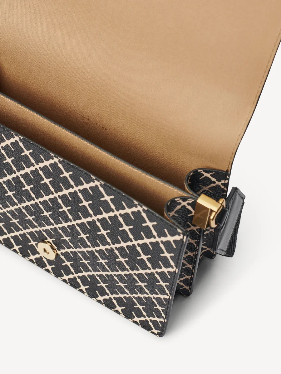 Crafted from durable fabric printed with our Signature Flower motif, this versatile bag is stamped with the house insignia on the strap and trimmed with leather. It has an adjustable strap in cotton webbing to ensure the perfect fit. Magnetic flap closure Adjustable shoulder strap Leather trim Gold hardware Strap length 109 cm 24 x […]
