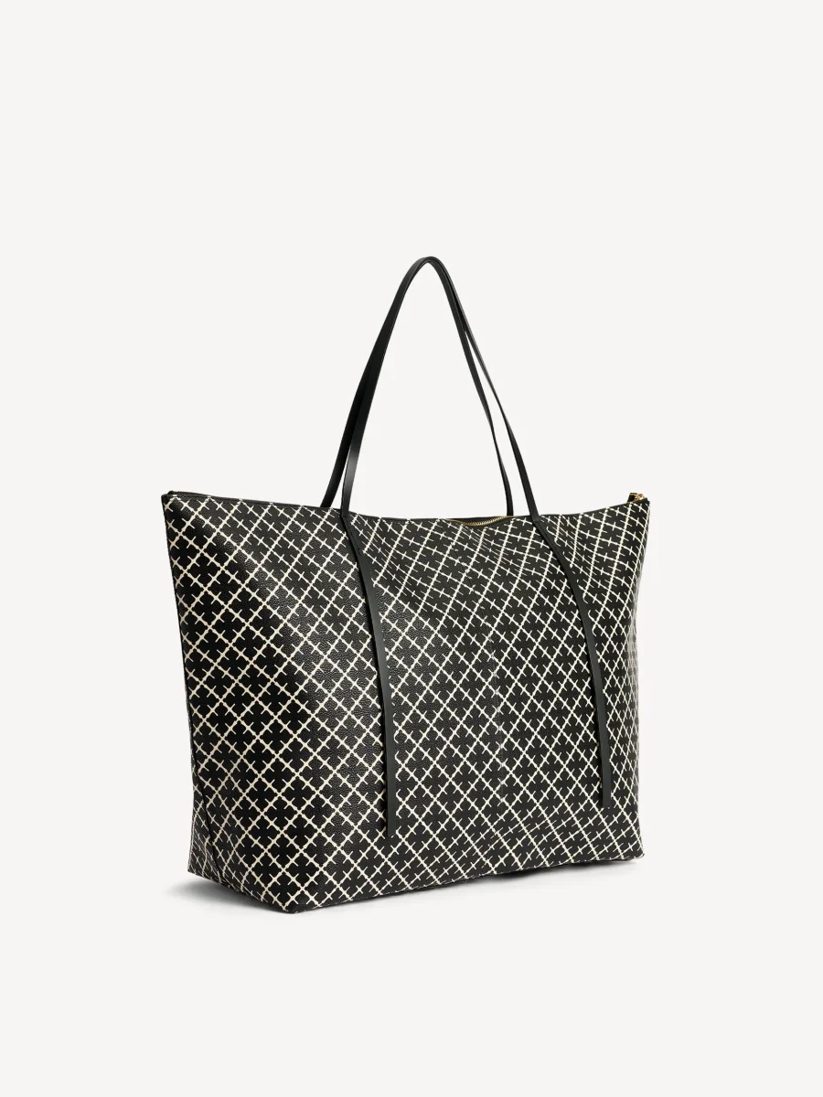 By Malene Birger Leese bag crafted from durable fabric to a classic tote. Refined with the By Malene Birger Signature Flower print, the design features a spacious compartment that fastens with a zipper, slim straps, and golden lettering. Carry it over your shoulder wherever you go.
