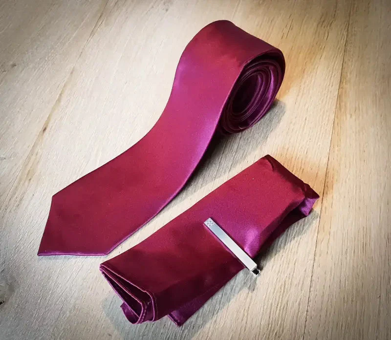 Bli först med att recensera ”Cavani Burgundy slips med näsduk”