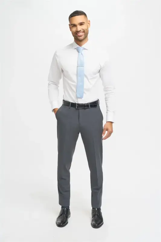 Om du letar efter en elegant, tidlös look är dessa byxor det perfekta valet. Den moderna, slimmade passformen ger en skarp och välklädd framtoning utan att kännas begränsande. Tack vare den klassiska antracitgrå färgen kan du bära dem om och om igen utan att de någonsin känns omoderna. De är en idealisk investering för både arbetslivet och mer festliga sammanhang.