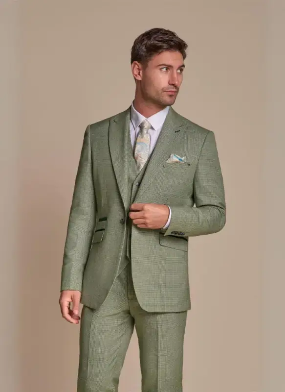Vill du imponera? Kombinera kavajen med matchande byxor och väst för att skapa en komplett look. Denna kostym är perfekt för formella tillfällen och ser till att du är välklädd från topp till tå. Klicka här för den tredelade kostymen Caridi Sage!