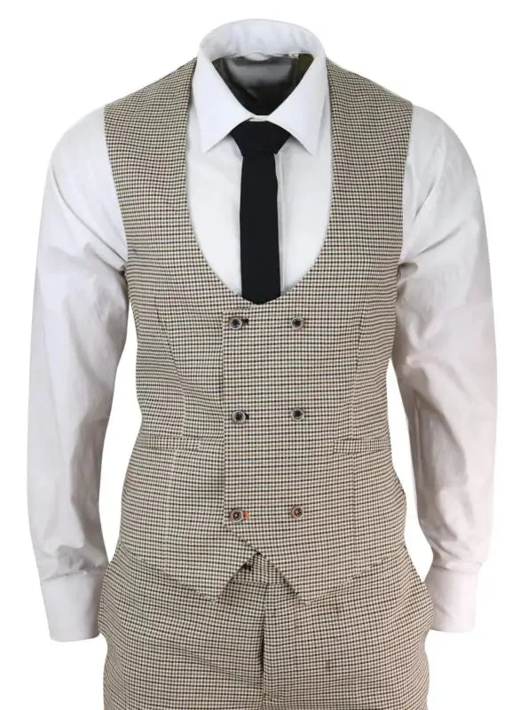 På utsidan kan du se olika broderier på knapphålen, en knapp och fina mörka detaljer på fickorna. Västen är dekorerad med två knäppningar. Den här stilen är typisk för 1920-talet och är på väg att göra en stor comeback.