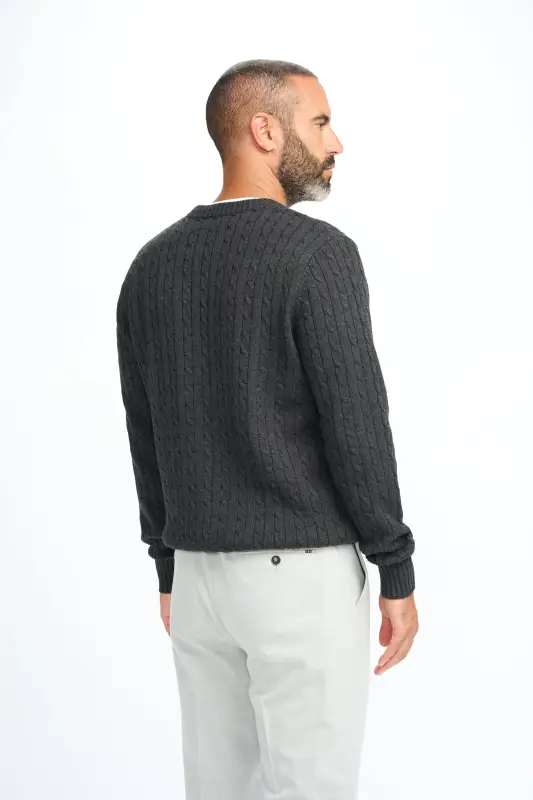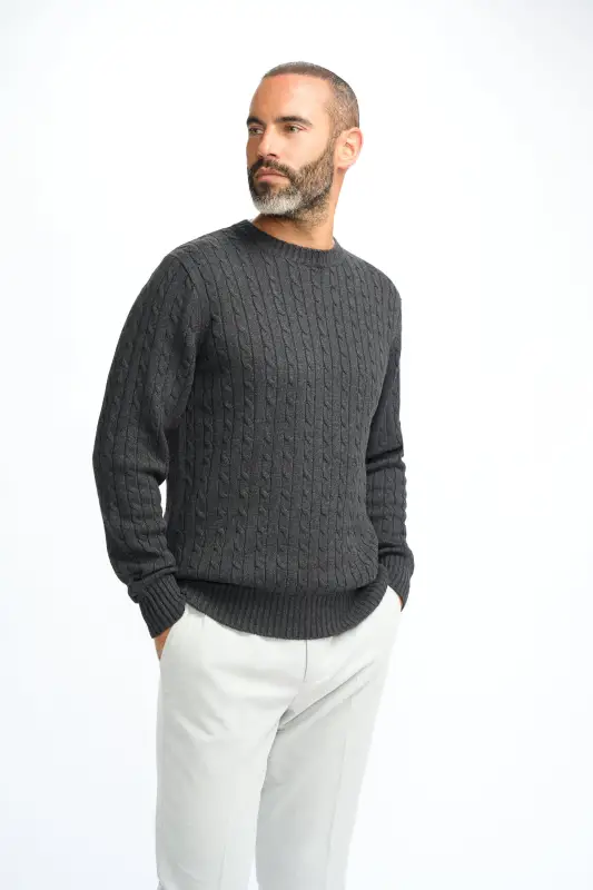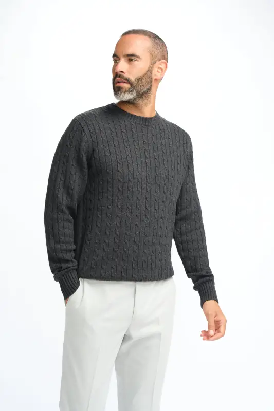 Cavani Foston Antracit – Kabelstickad ulltröja för herr