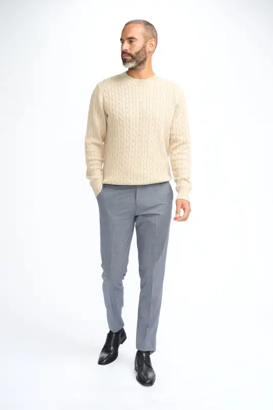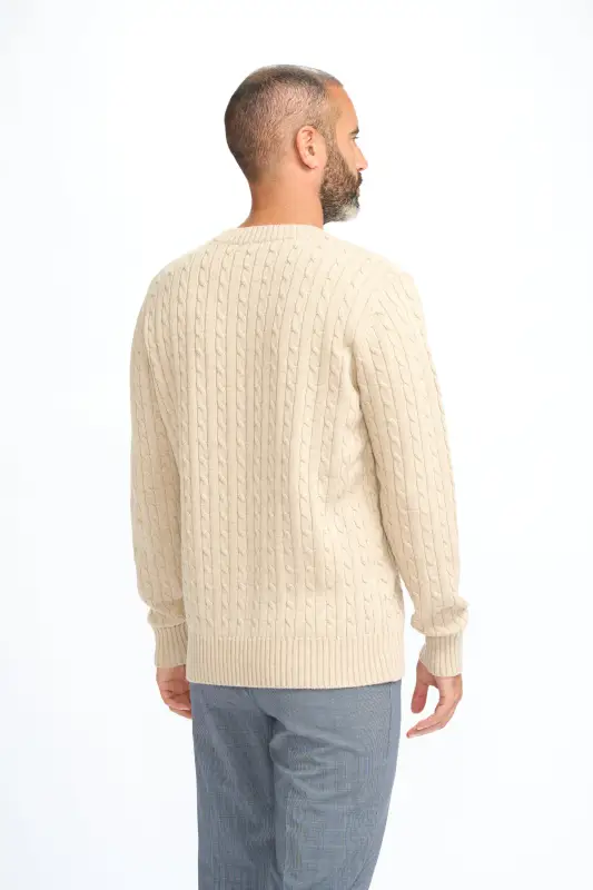 Cavani Foston Beige – Kabelstickad ulltröja för herr