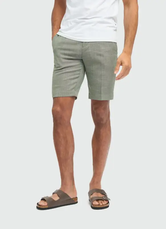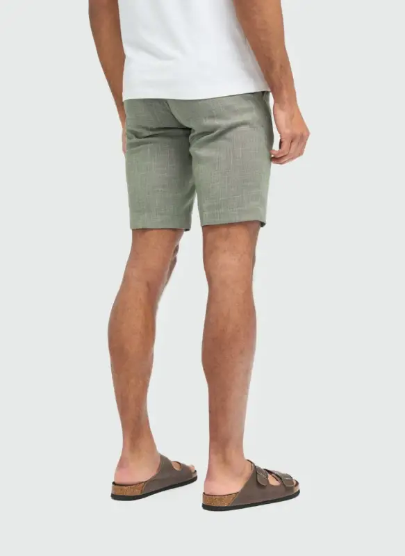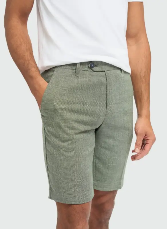 Shortsen är tillverkade av en noggrant sammansatt blandning av polyester, viskos, Tencel, linne och spandex – en lätt och luftig sammansättning som gör dem idealiska för varma dagar. Tyget har en mjuk känsla mot huden och tack vare stretchen sitter shortsen perfekt, samtidigt som de ger full rörelsefrihet. De slitstarka materialen ser till att shortsen håller formen, tvätt efter tvätt.