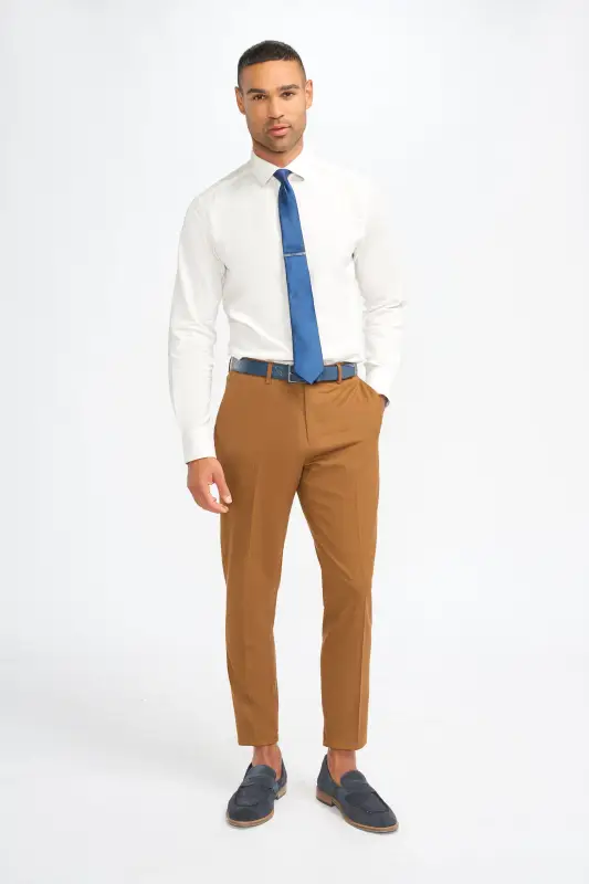 Cavani James-byxan i färgen Sierra är det perfekta valet för alla tillfällen. Med sin slimmade passform och exklusiva Super 130s-ull erbjuder denna byxa en modern look och hög komfort. Den är idealisk för både formella och smart-casual tillfällen, så att du alltid ser välklädd ut.