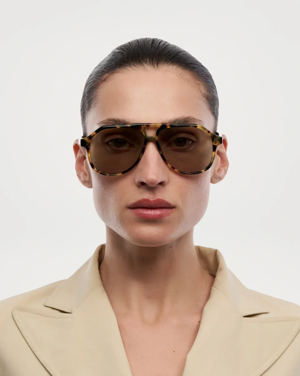 An aviator silhouette with structured contours and arched double bridge. Finished with custom made metal detailing characterized by our signature metal trim. ”Handcrafted in Acetate Renew™, composed of bio-based and certified recycled materials. Comes with a protective case and cleaning cloth.” Size: One size Light Blocking Ability: Medium Material: Acetate Renew Unisex ✓ Medium reduction […]