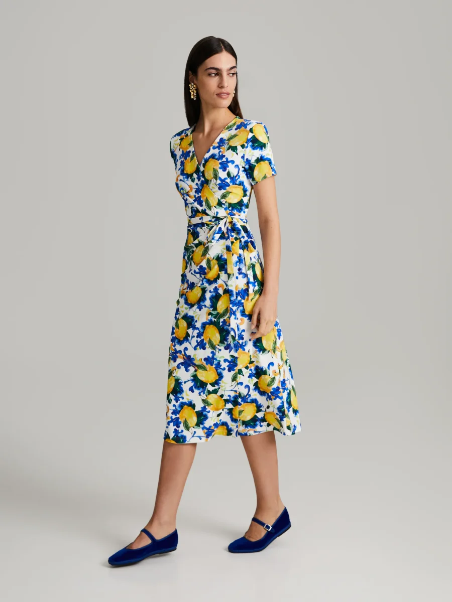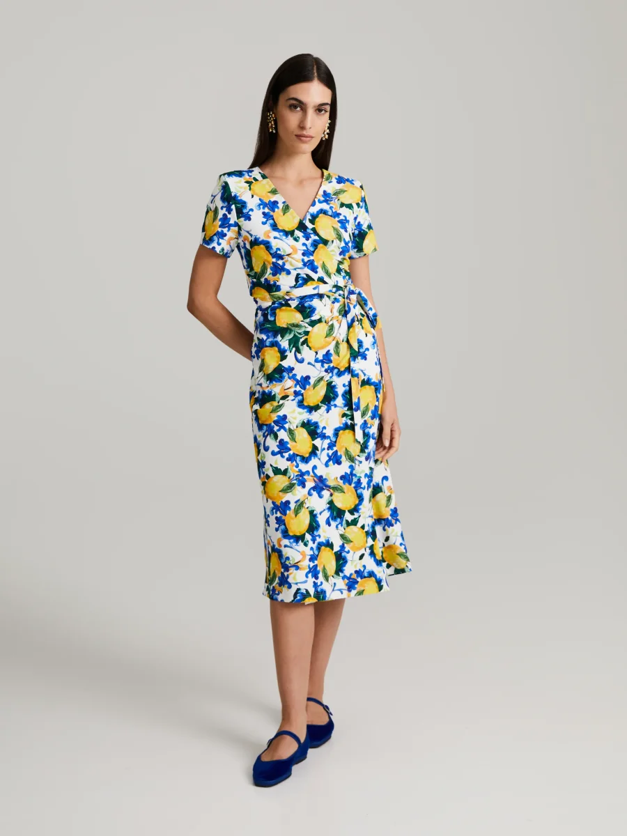 Knytdress i knälängd kortärmad. Tillverkad i stretchig och fast italiensk jersey.