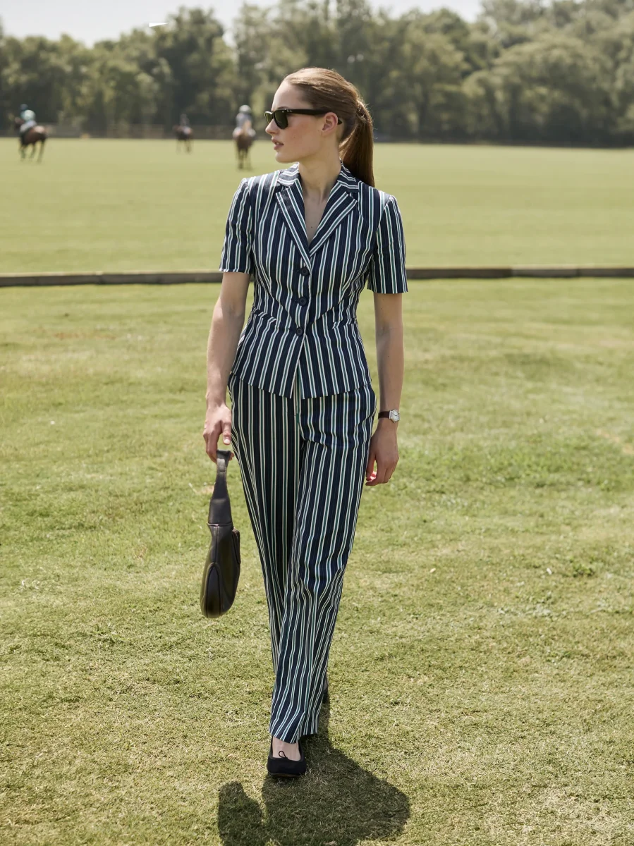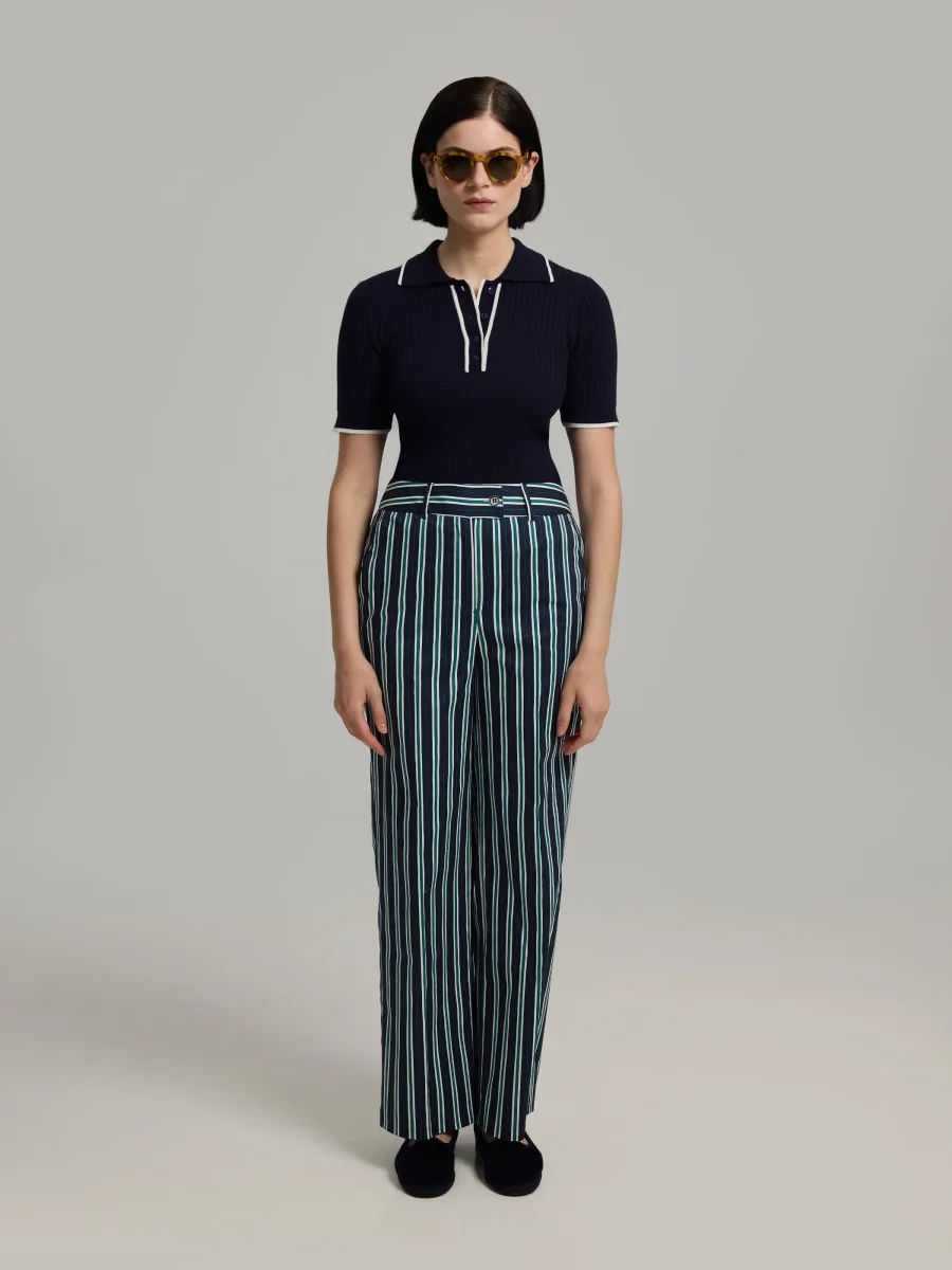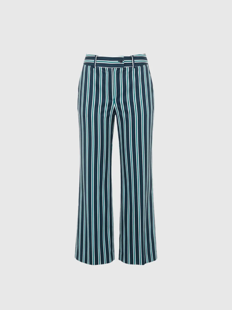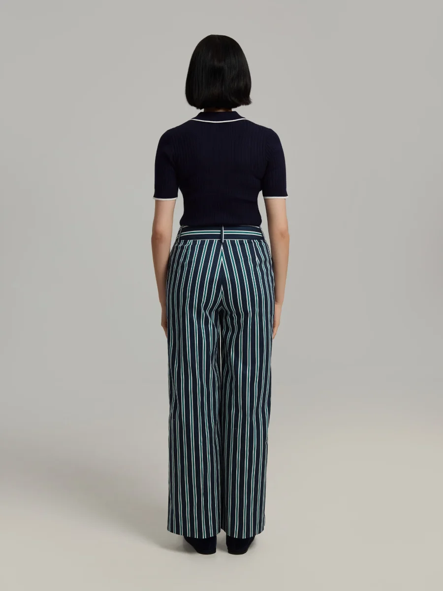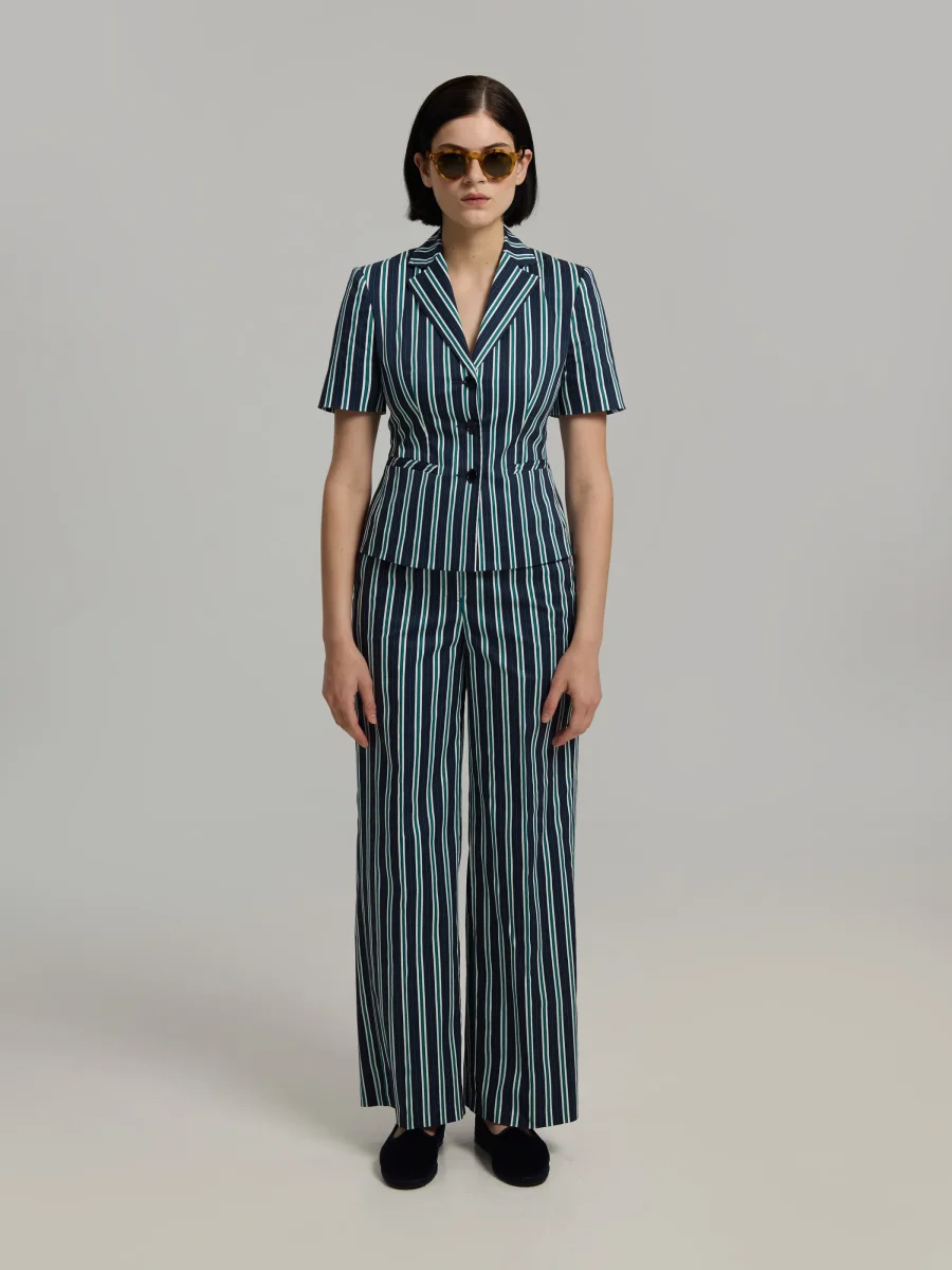 High-waisted full length trousers crafted from stretchy Italian cotton fabric, featuring a wide-leg silhouette. Finished with slanted side pockets, belt loops and front zipper and button closure on the structured waistband. Pair with the matching Juni Blazer.