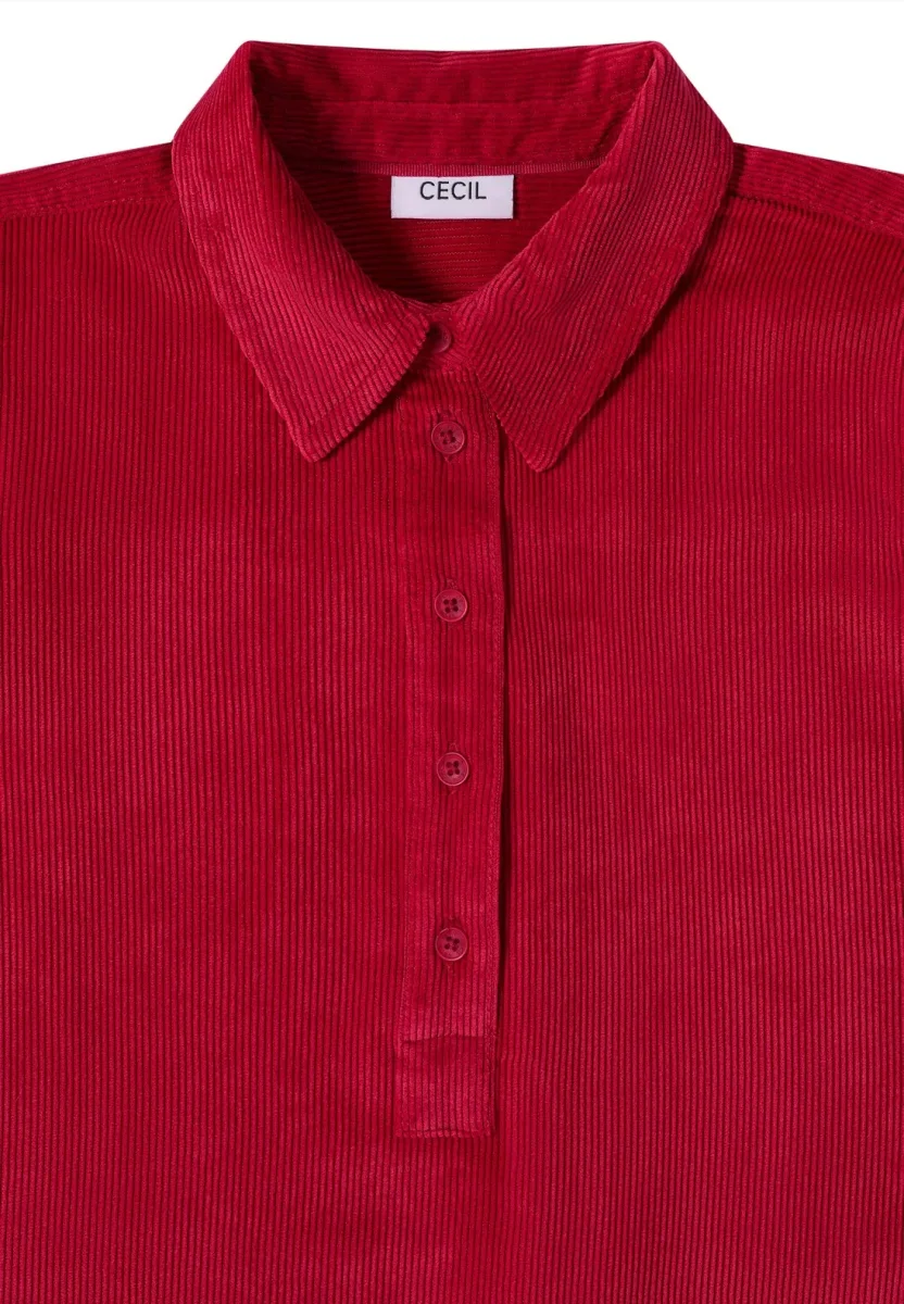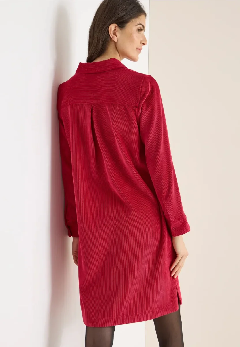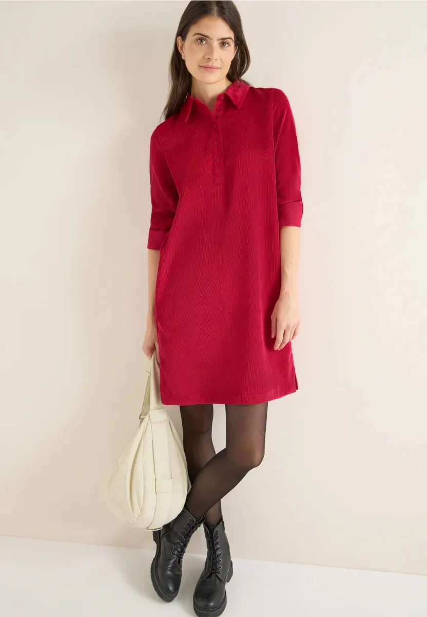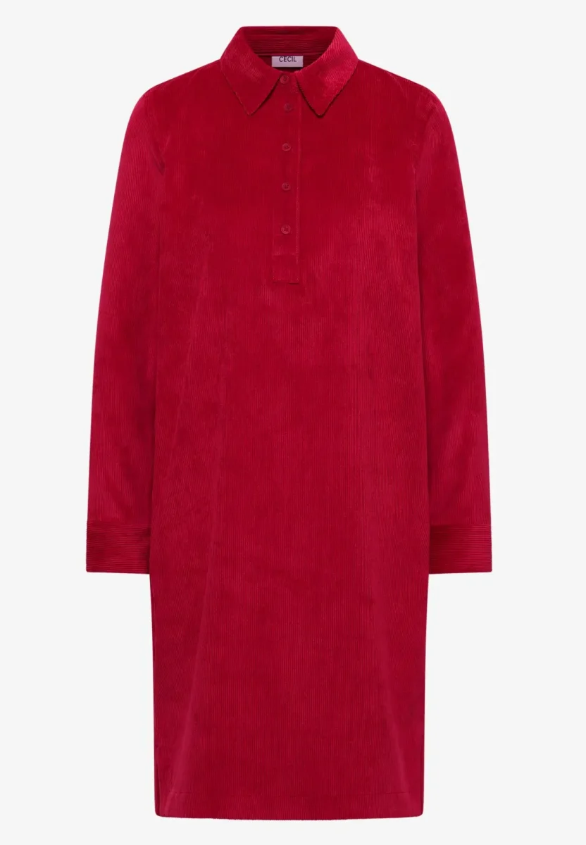 Denna CECIL-klänning i manchester för dam imponerar med sitt mjuka tyg och avslappnade look i enfärgad färg. Skjortkragen, den dekorativa knappslåen och sidoslitsarna ger moderiktiga detaljer, medan den knälånga skärningen och sidofickorna betonar komforten. Perfekt för snygga, avslappnade outfits med feel-good-faktor.