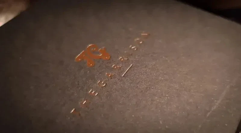 Klockan levereras i en vacker box från The Garrison. Lådan är svart med brunt tryck.