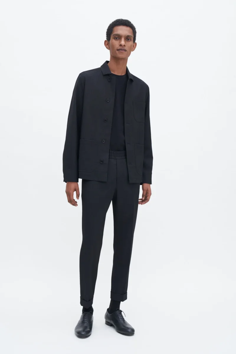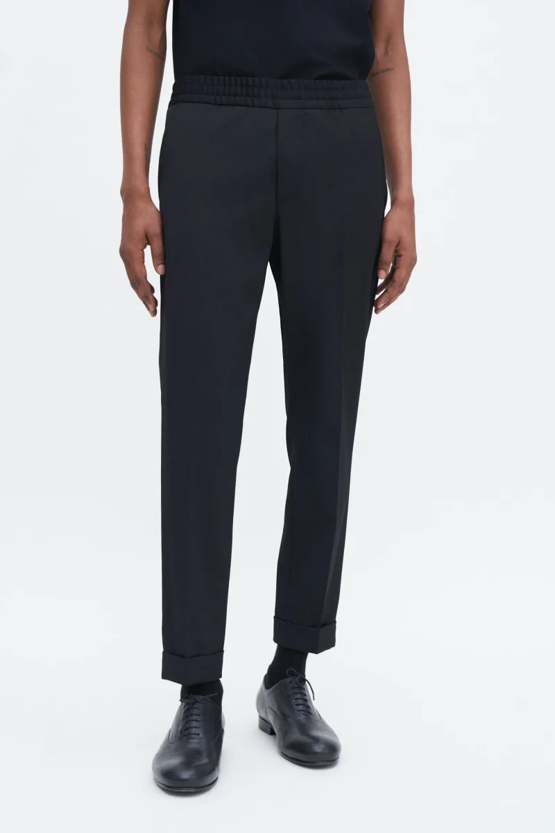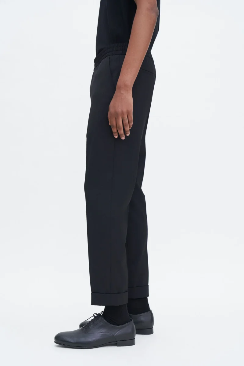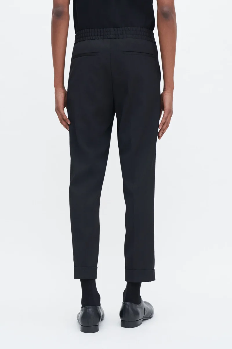 Terry Cropped Trousers har en avsmalnande silhuett med en medelhög midja och croppad längd. Tillverkade i svart, tjock stretchtwill och designade med ett elastiskt midjeband som har en dold dragsko och ben med uppvikta slag. Bär dem på jobbet eller på helgerna med t-shirts, skjortor och tröjor. Prova Relaxed Wool Trousers för en liknande stil med hellängd. Det här plagget är en del av vår Core Collection: permanenta stilar designade med de väsentliga delarna av en basgarderob i åtanke.
