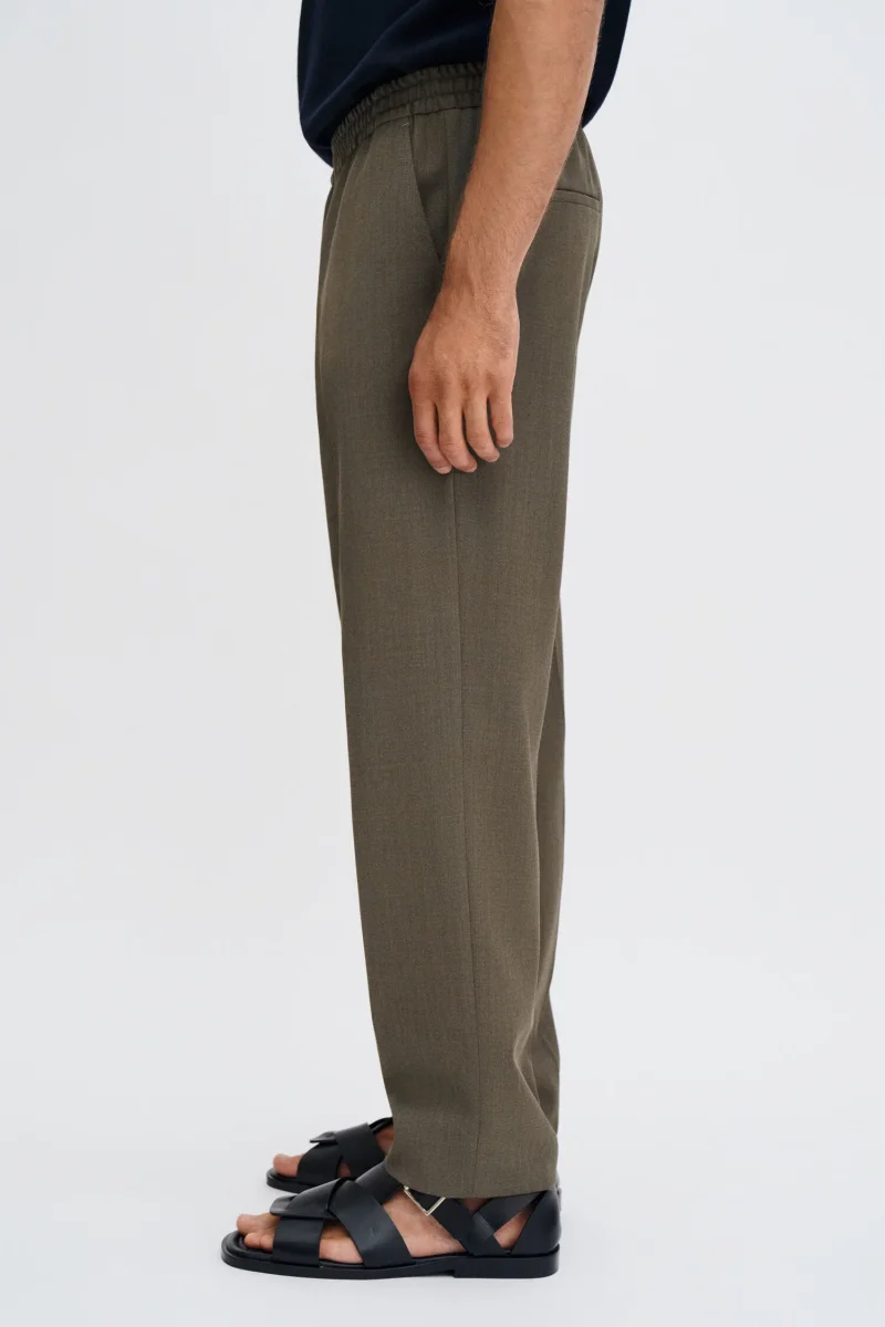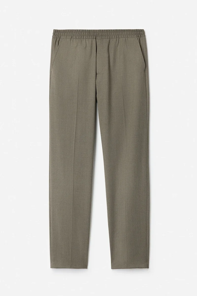 Theo Trousers har en avslappnad avsmalnande passform med midjehög midja och full längd. Tillverkade i cavalry stretch twill med en bekväm elastisk midja. För en liknande stil med smalare passform och croppad längd, prova Terry Cropped Trousers.