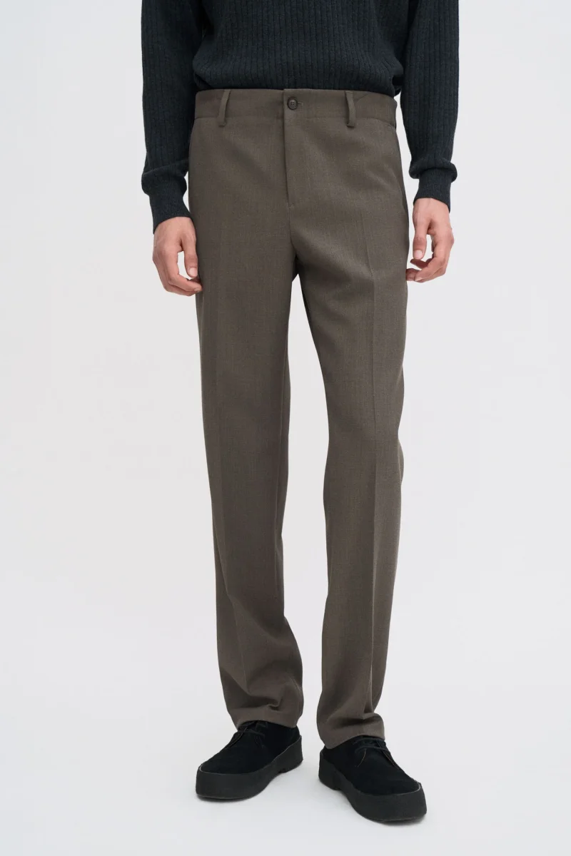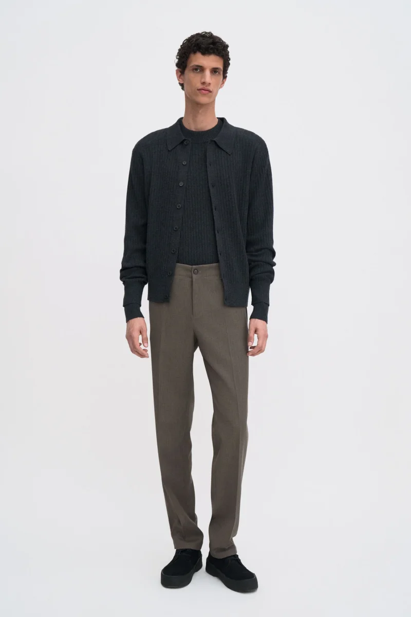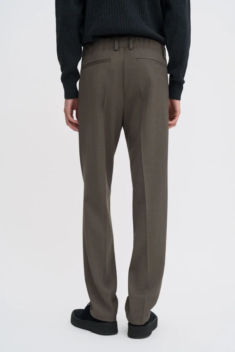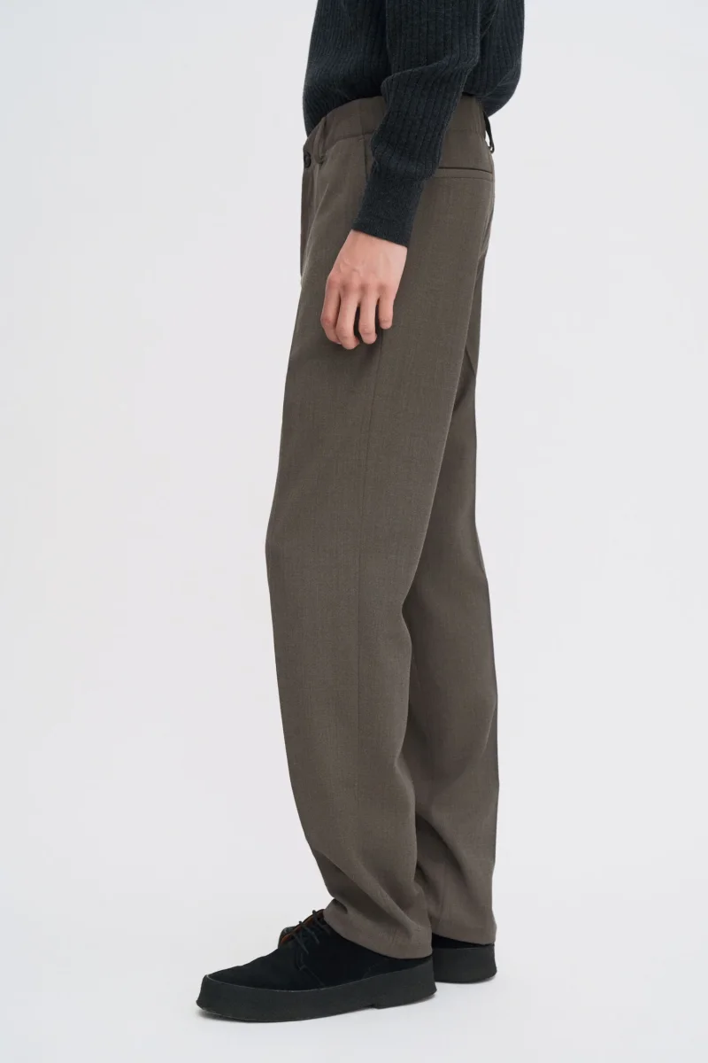 The Troy Trousers are designed with a regulat fit and mid-waist, tailored from a wool blend gabardine with subtle stretch. A relative of our best-selling Terry and Theo Trousers, they have a button closure at the front with an elastic waist at the back, and a full length. Wear them with a cosy knit for an elevated outfit, day or night.