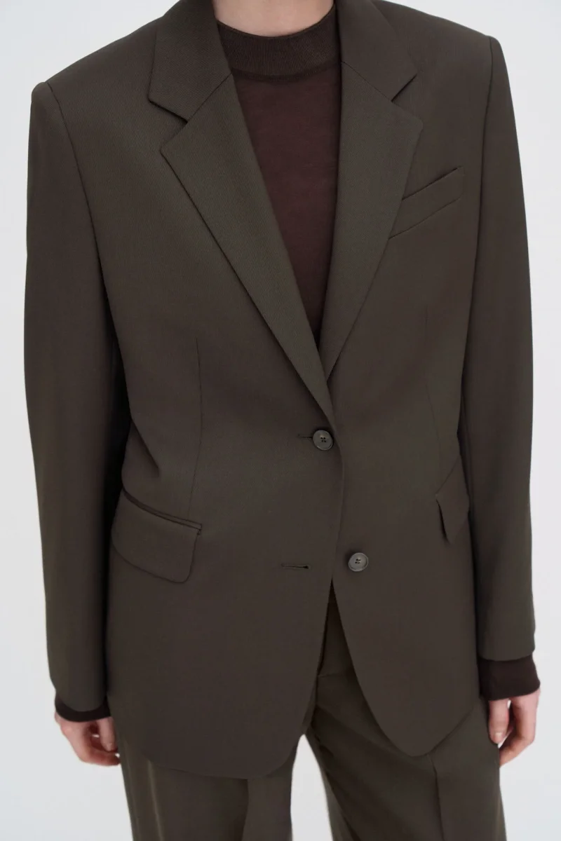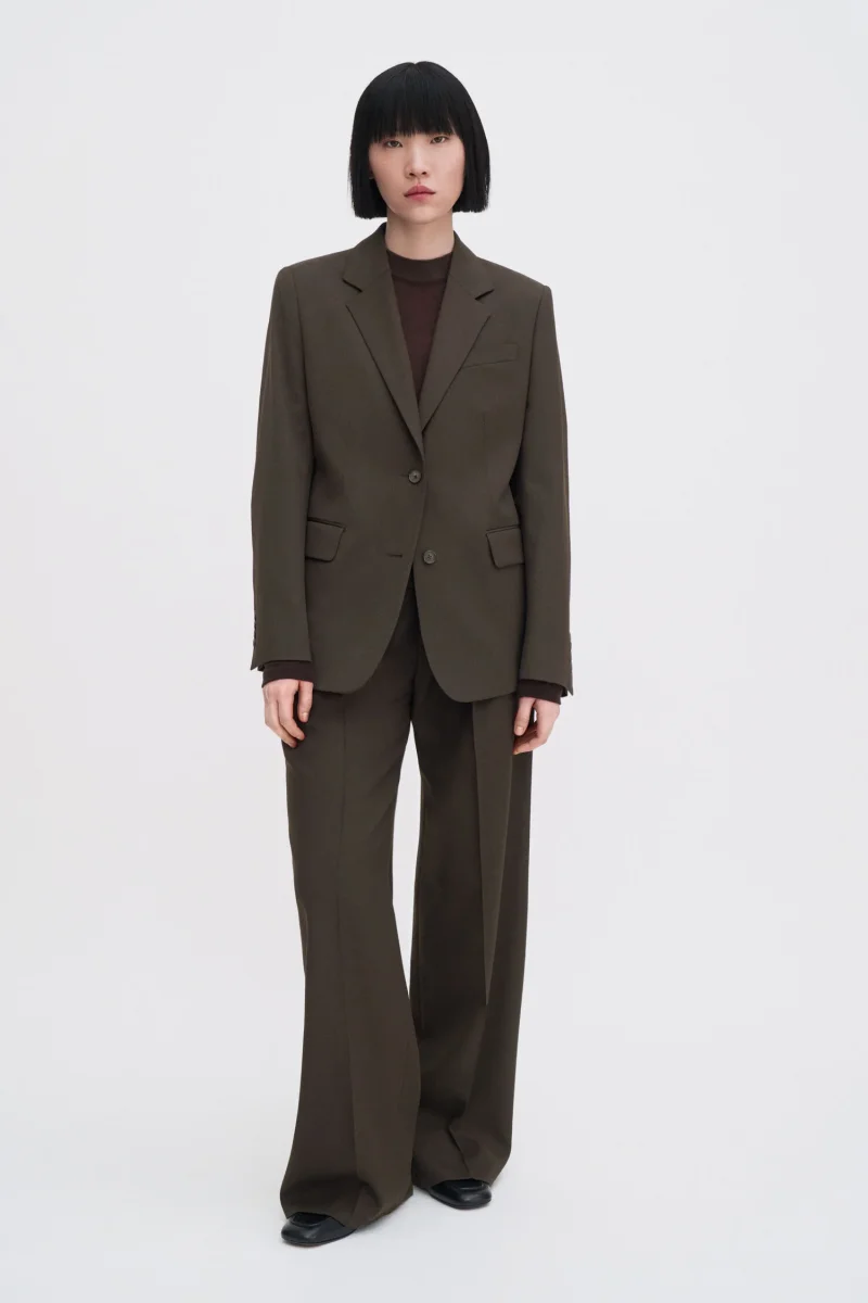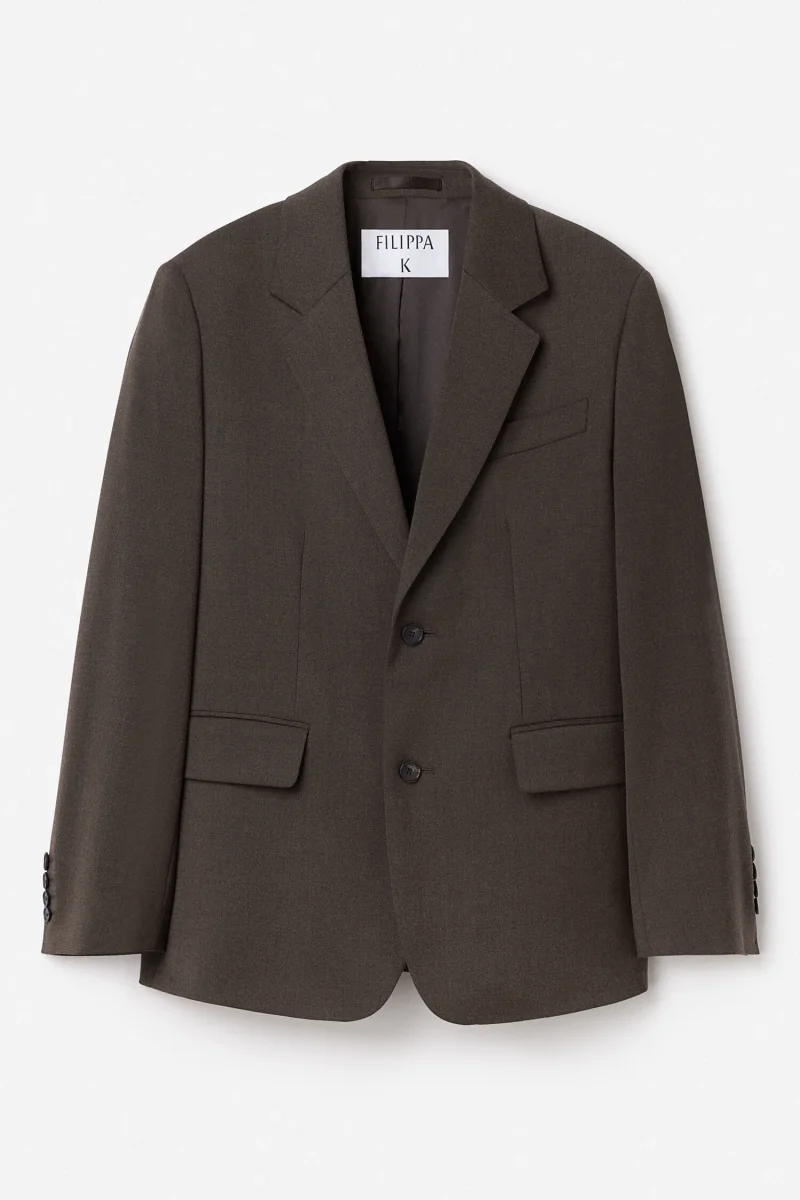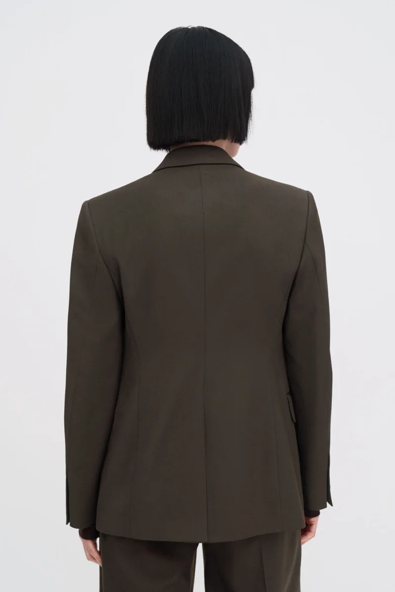 The Delilah Blazer has a regular, single-breasted fit. Tailored from a merino wool suiting fabric with slight stretch, fully lined. Wear it with the Darcey Trousers for a full suit look.
