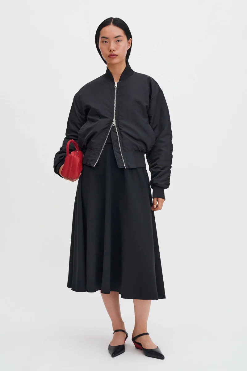 The Flared Skirt is made in a mid-weight matte crepe that resists wrinkling. Designed with a high waist, midi length, and side pockets. Storlek:Normal i storleken, ta din normala storlek Modell:Modellen är 176cm / 5’9 och bär storlek 36 / S Storlek och passforms detaljer: Midi längd High waist Concealed zipper at centre back Side […]