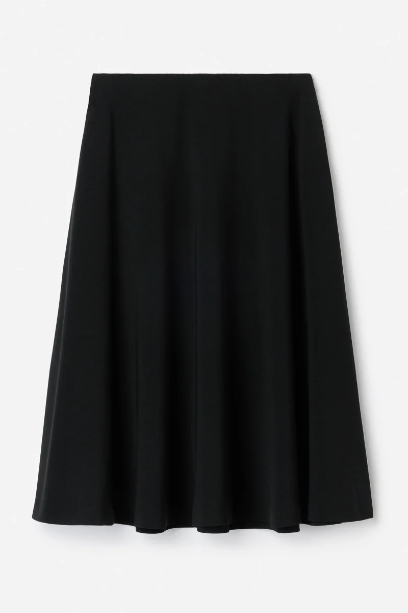 The Flared Skirt is made in a mid-weight matte crepe that resists wrinkling. Designed with a high waist, midi length, and side pockets.