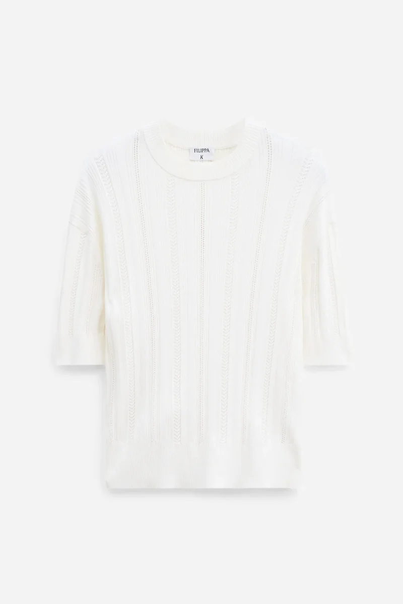 Lightweight viscose t-shirt in a braided pointelle knit pattern with a relaxed fit. Dress it up or down, depending on the occasion.