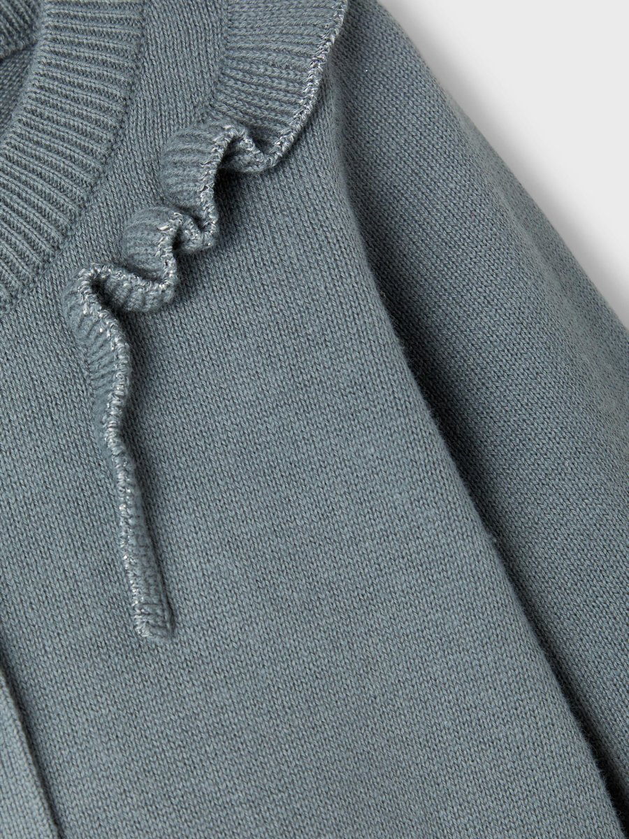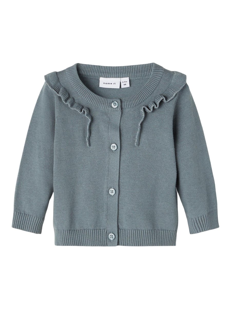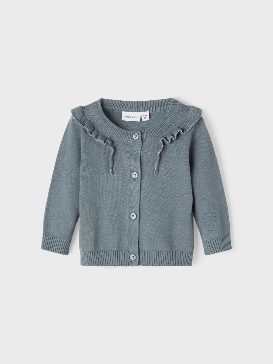 Stickad kofta med söta volanger i ekologisk bomull. Denna produkt är gjord av ekologisk bomull. Ekologisk bomull odlas utan användning av skadliga kemikalier. Ekologisk bomullsodling skyddar naturresurser och bönder. 98% bomull – ekologisk, 1% metalliska fibrer, 1% polyester 40°C färgtvätt, Blek ej, Torktumla ej, Stryk i måttlig temperatur, Kemtvätt ej 13191048 NBFKIRAI LS KNIT CARD