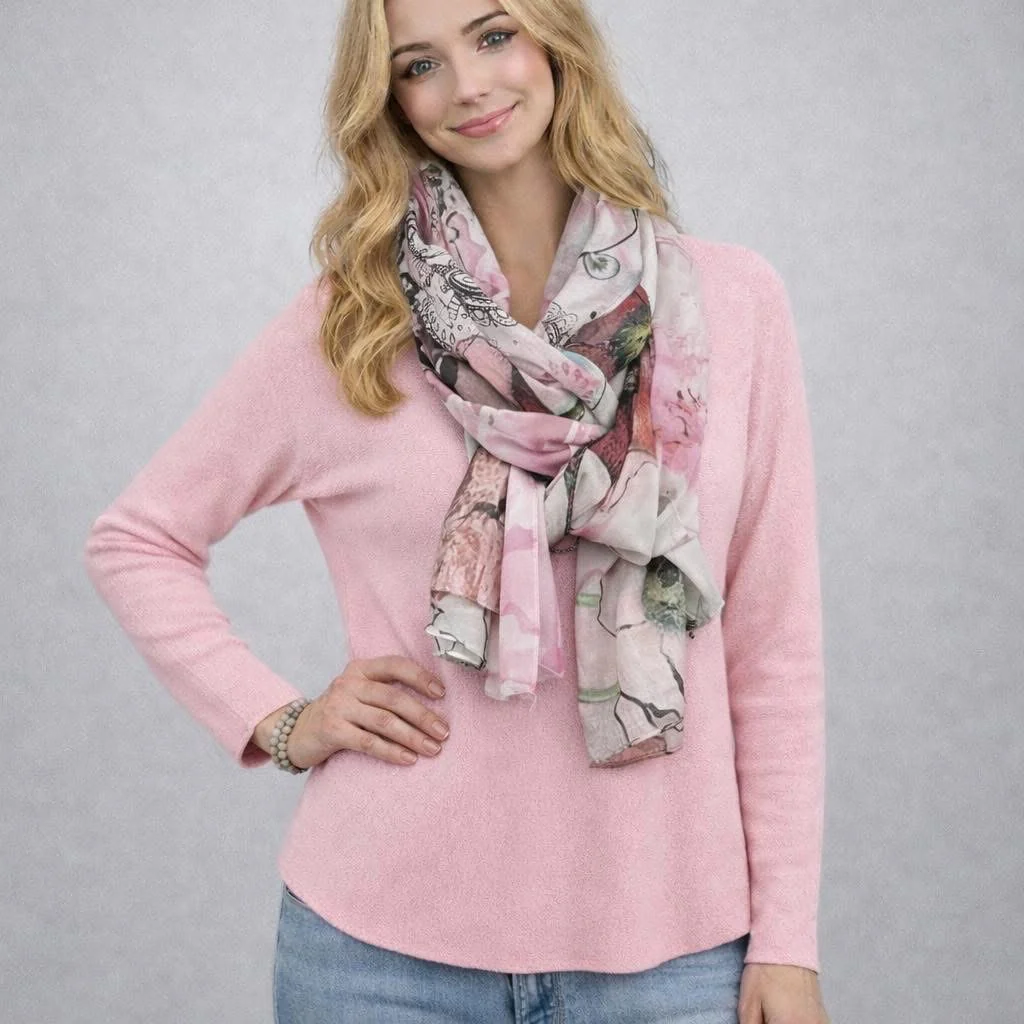 Finstickad tröja med v-hals. En finstickad tröja i supermjukt och skönt material. Produktinformation: Färg: Rosa Material: 50% viscose, 25% polamid, 15% polyester, 10% casmere Storlek: Onesize Varumärke: MixByHeart Varunummer: Hella530