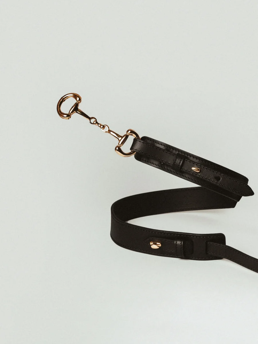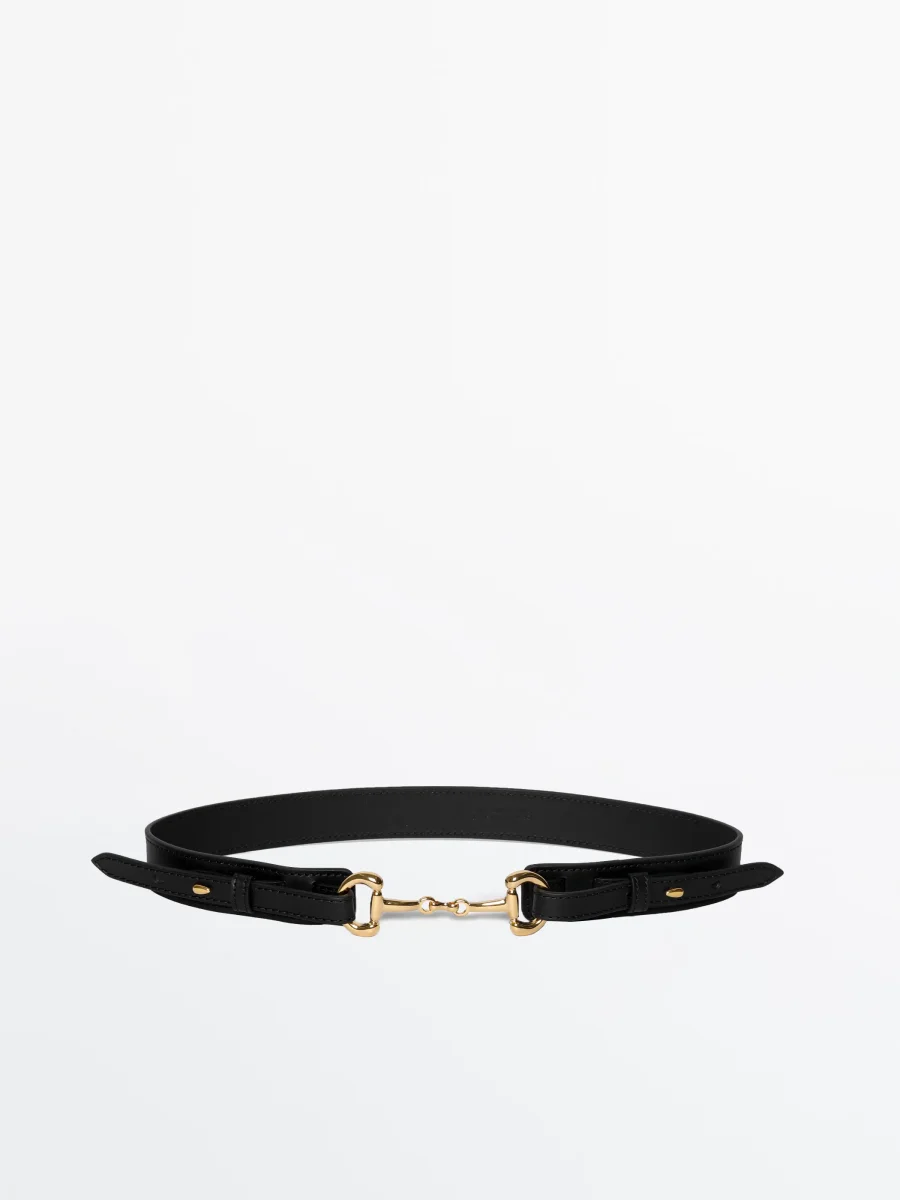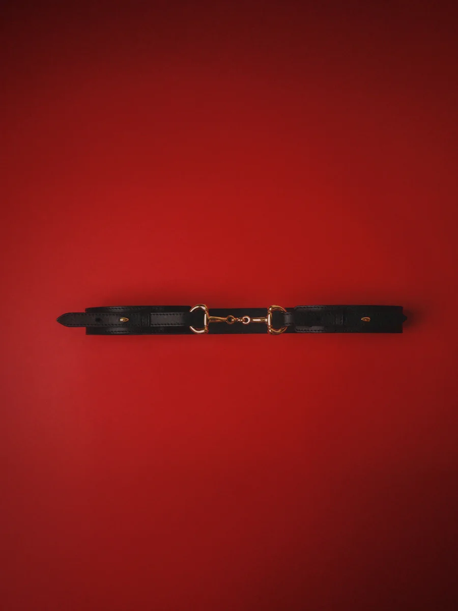 Läderbälte med hästbett spänne i guldfärgad nickelfri metall. Handgjord i Italien.