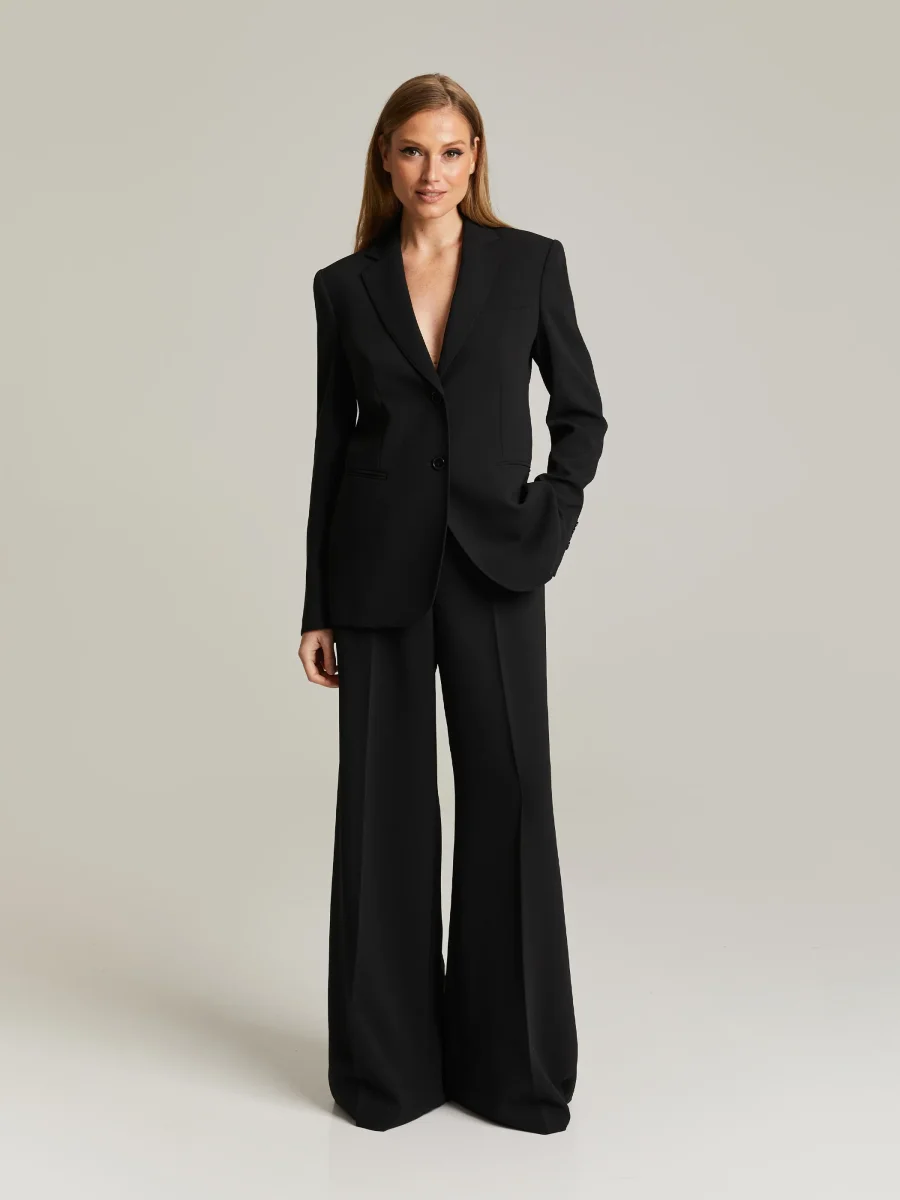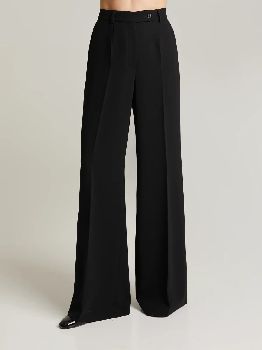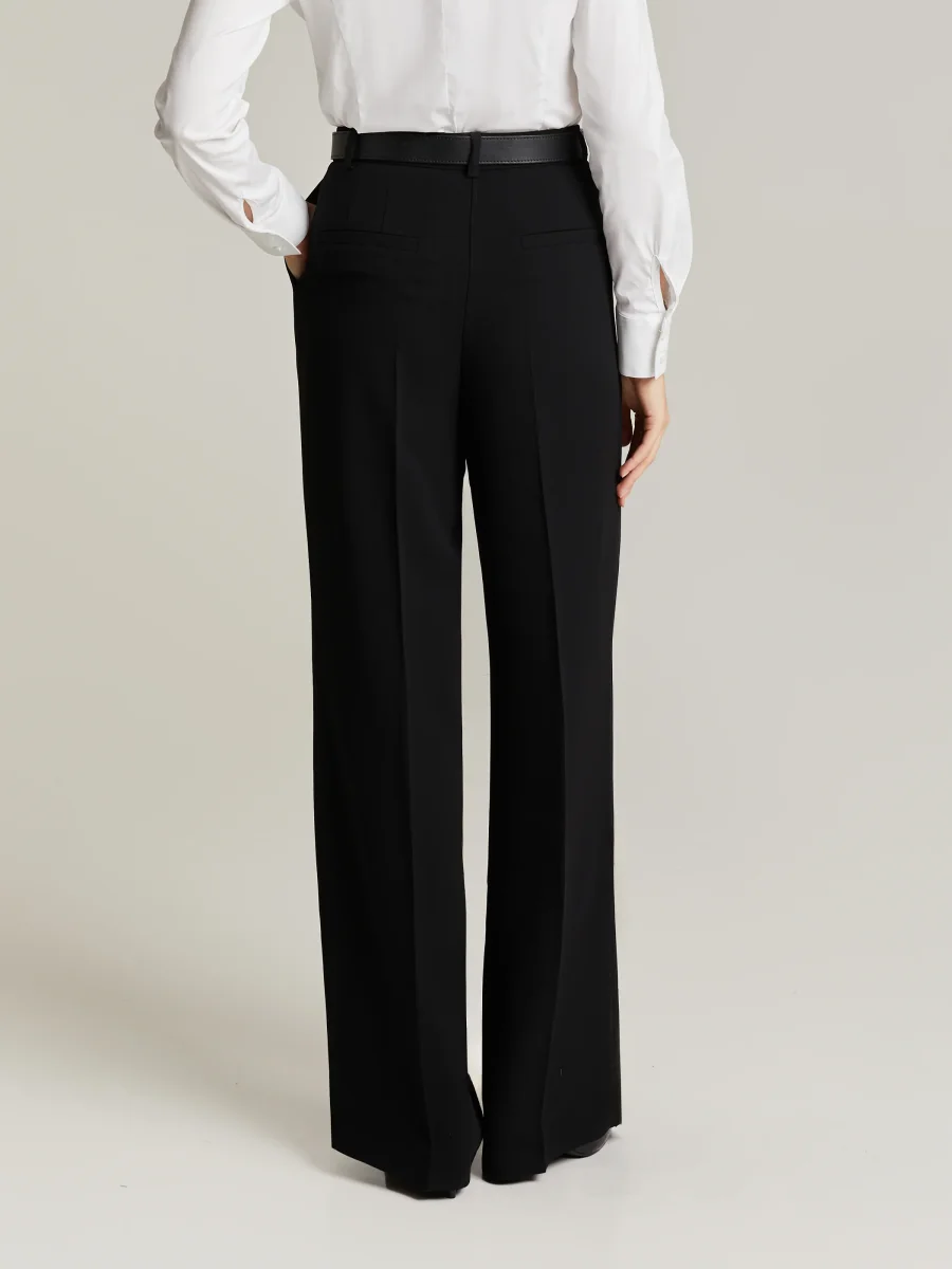 Raka byxor med hög midja, pressade veck fram och bak, bälteshällor, sidfickor och passpoalfickor bak. Tillverkade av högkvalitativ, skrynkelfri polyester. Tyget faller vackert. Kombinera med matchande Brette Blazer.