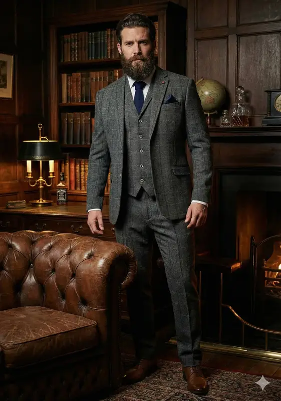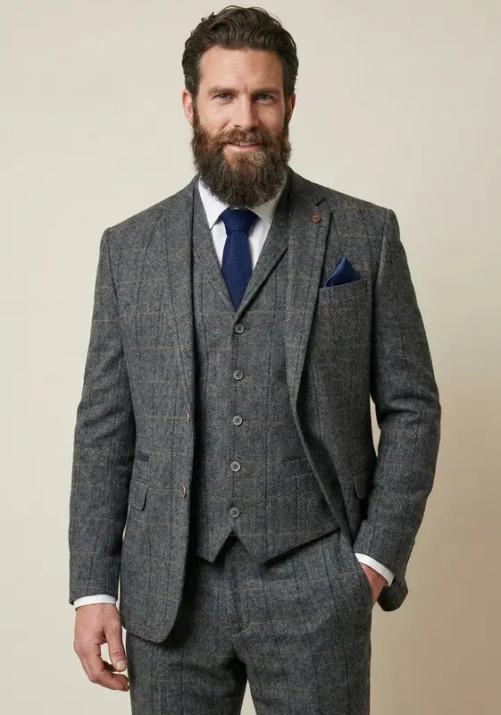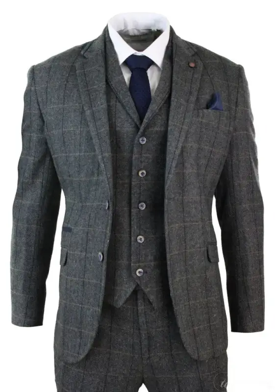 - Tweed Vintage tredelad rutmönstrad kostym.