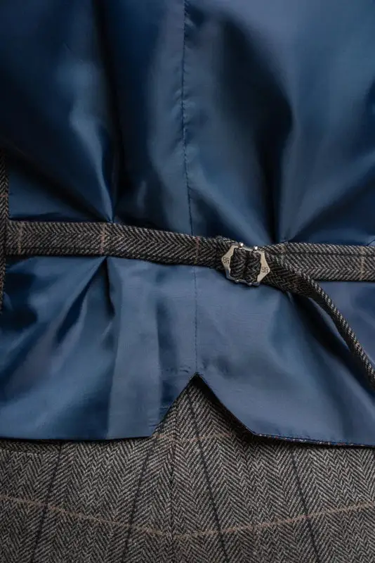 - Komplett med jacka, väst och byxor, i tweed med strukturerat rutmönster och kontrasterande detaljer.