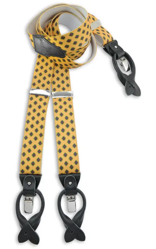 Den ockragula färgen och ornamentdetaljerna gör dessa hängslen till ett djärvt men tidlöst val. Kombinera dem med en mörk kostym för en sofistikerad kontrast eller ge en avslappnad outfit en elegant touch. Sir Redman erbjuder ett brett utbud av färger och designer – du hittar alltid något som passar just din personliga stil.